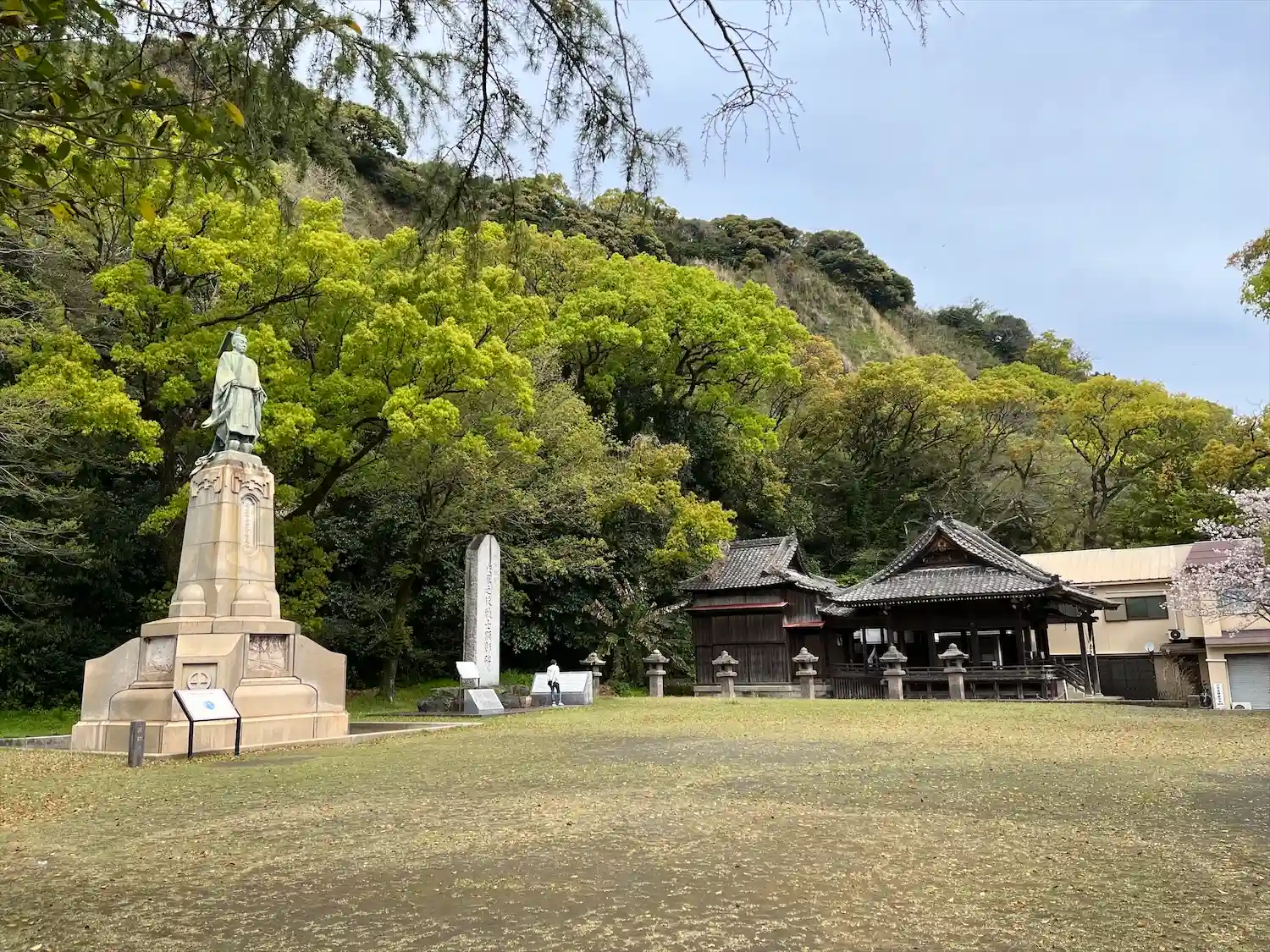 入館料無料の資料館があり、境内には斉彬公、探勝園には久光公・忠義公の銅像もあります。