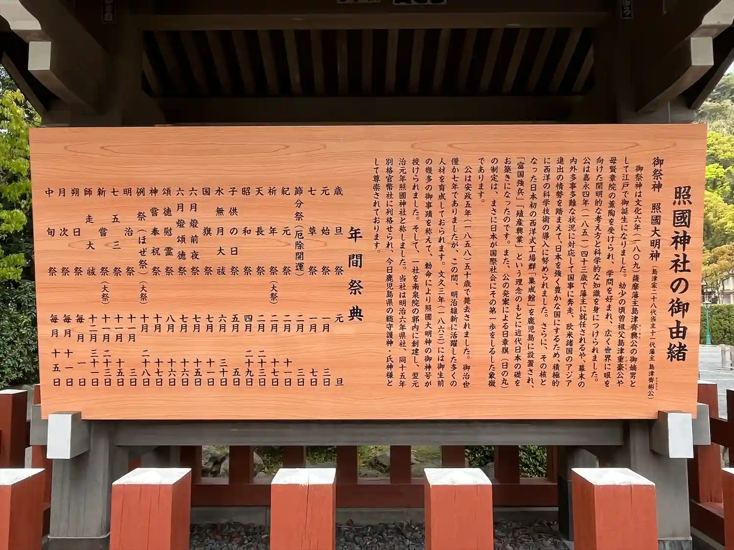 文久3年(1863年)、天皇から島津斉彬公に「照国大明神」の神号が授けられ、翌年、南泉院跡に社殿が建てられ、照国神社という名称に。