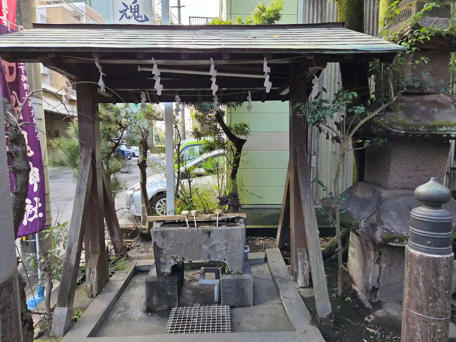 神社前の駐車場に一台分だけ参拝者用に用意されていました。敷地一杯に社殿等建物が占めており、境内はありません。参拝後、社務所の呼び鈴を押して対応して頂きました。朝早かったので恐縮でしたが心良く御朱印を戴けました。