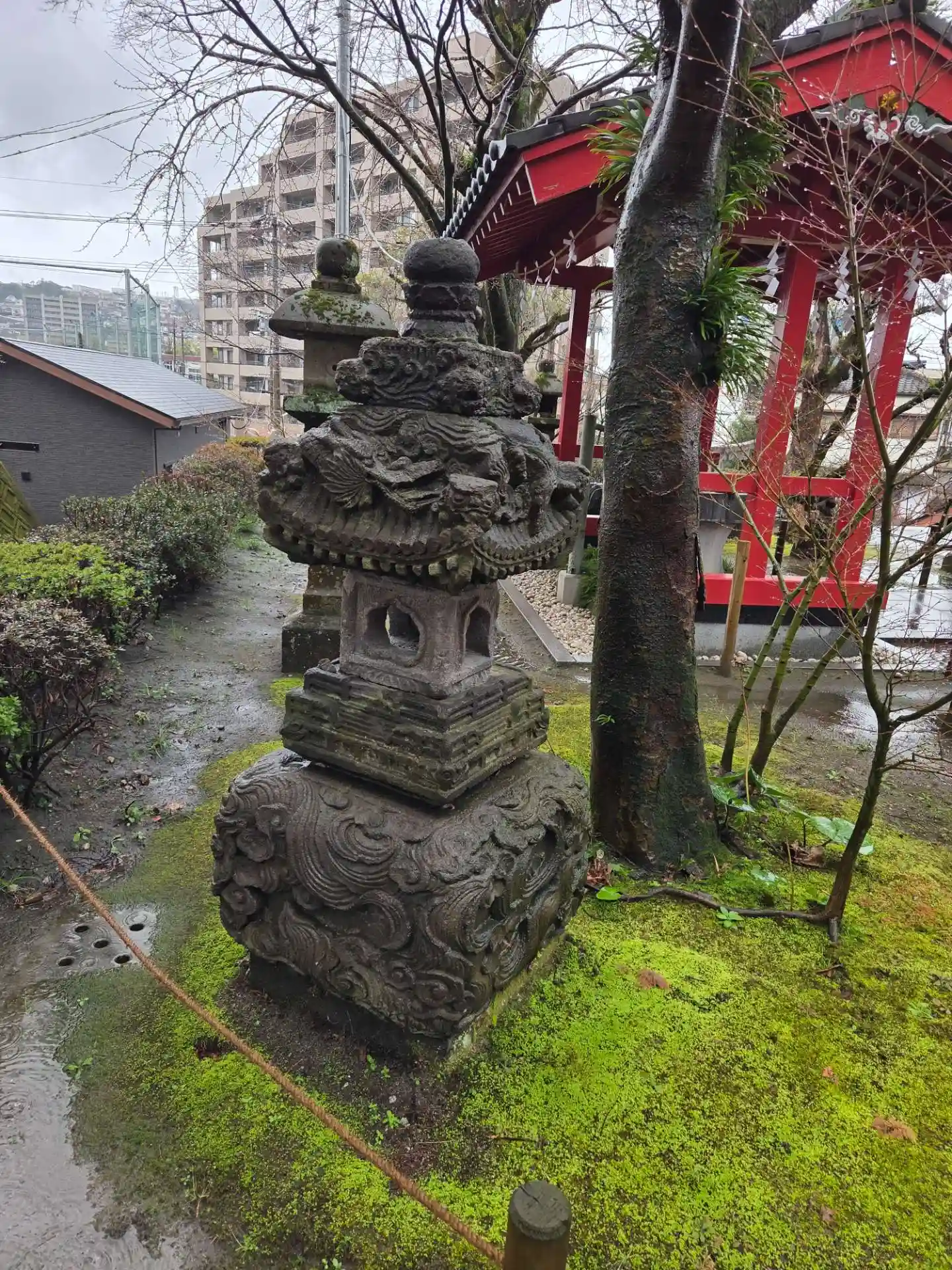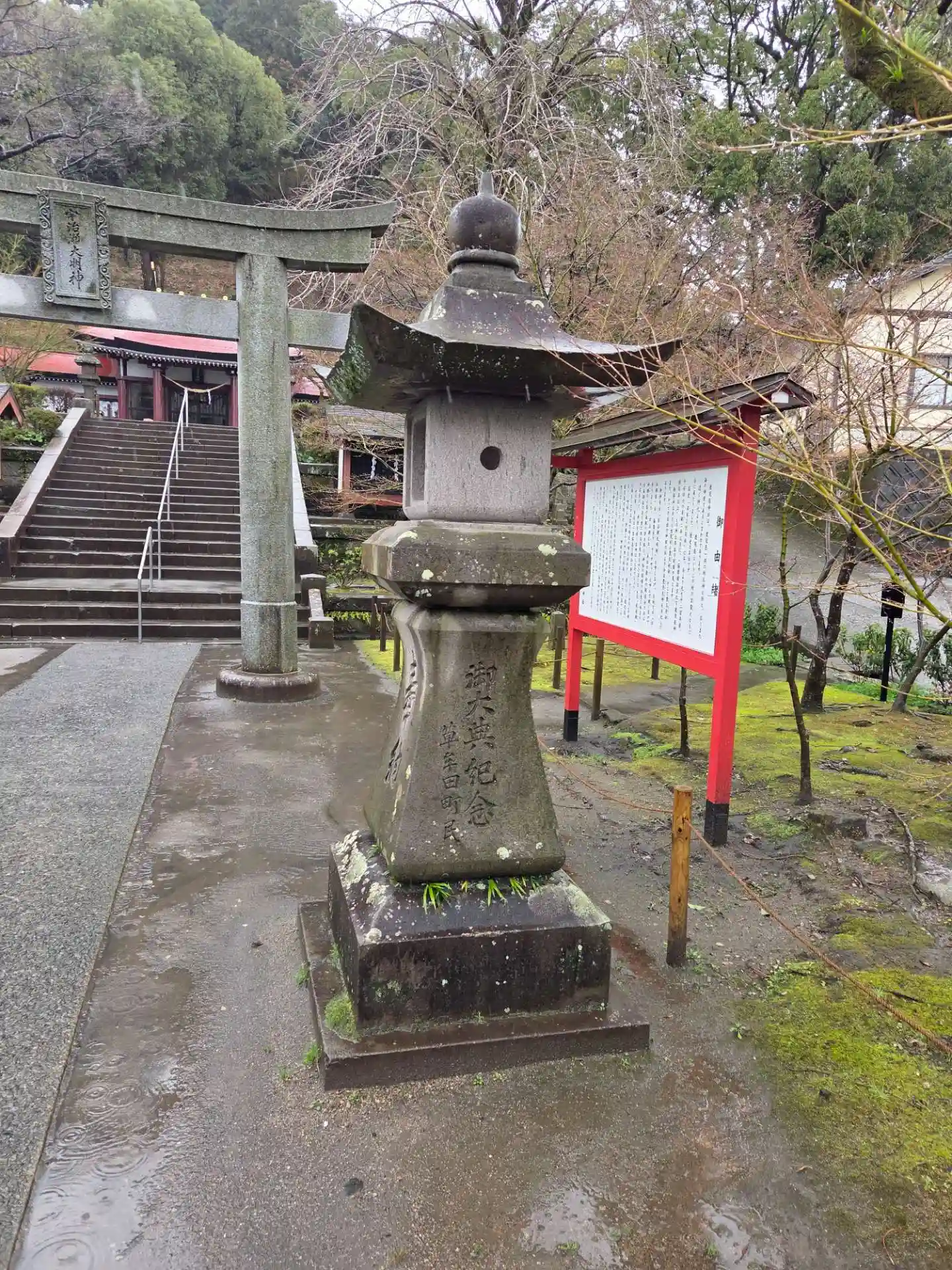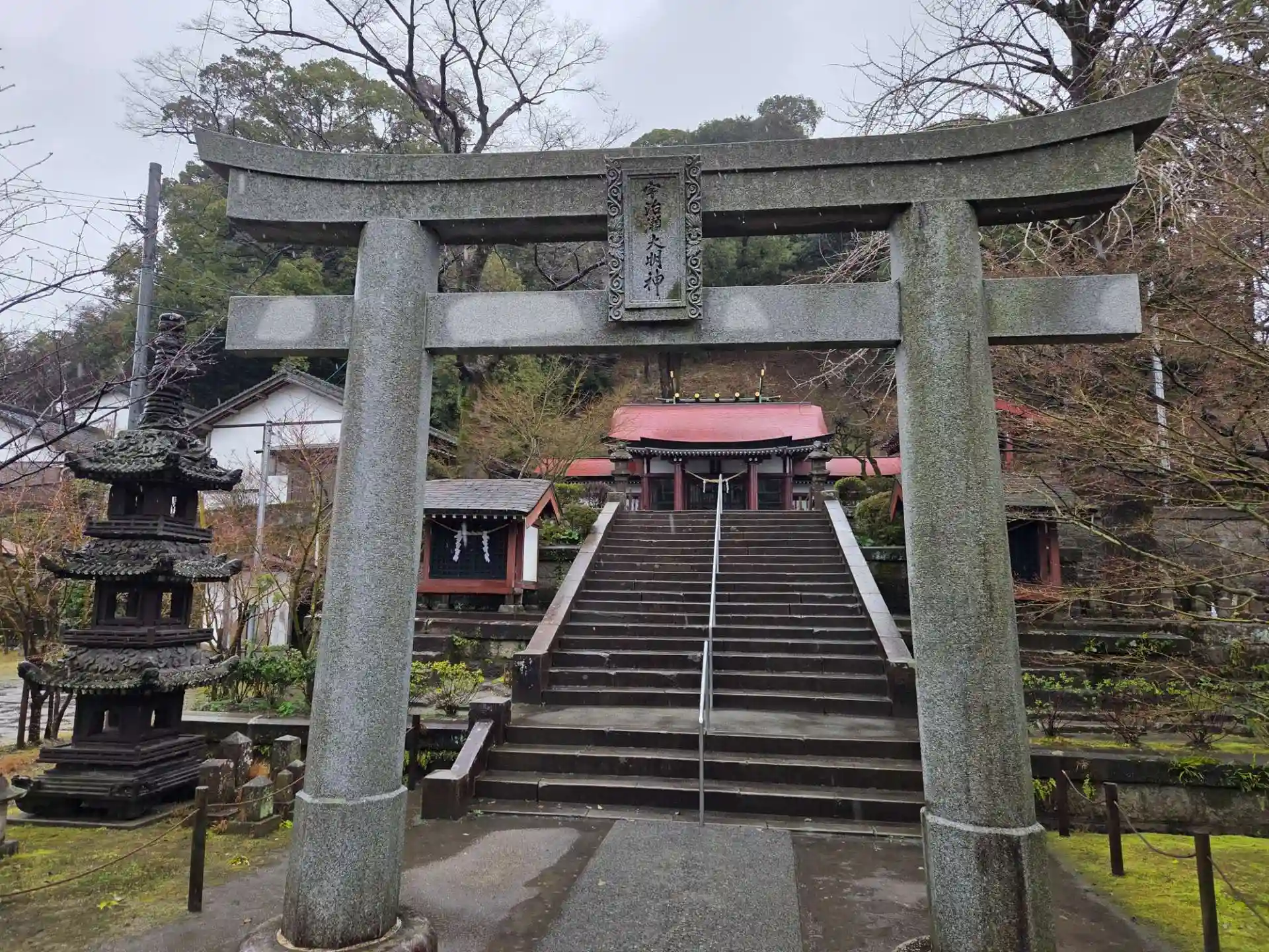 護国神社から徒歩圏内ですが、駐車場もあり、雨なので車移動。小さな神社ですが、鹿児島らしさは感じられる神社でした。