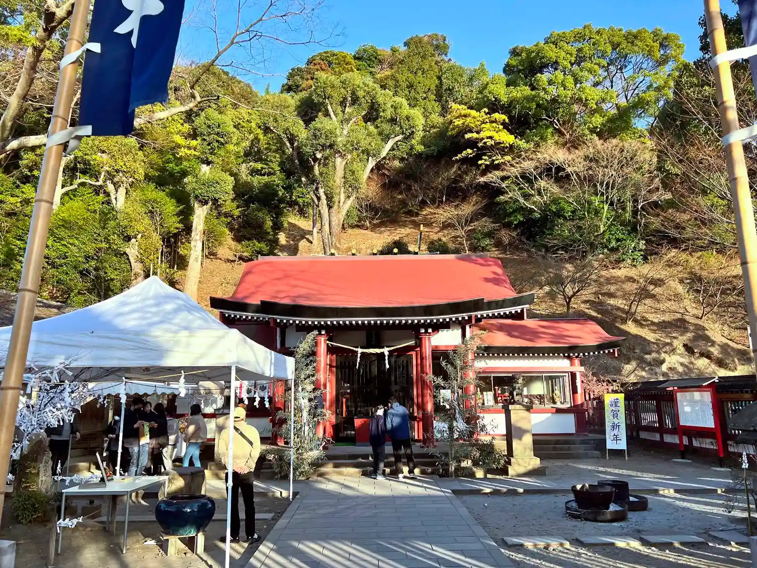 最後に<社殿>全景。コンパクトでも見どころが多く、参拝者がいっぱい。(^▽^)/