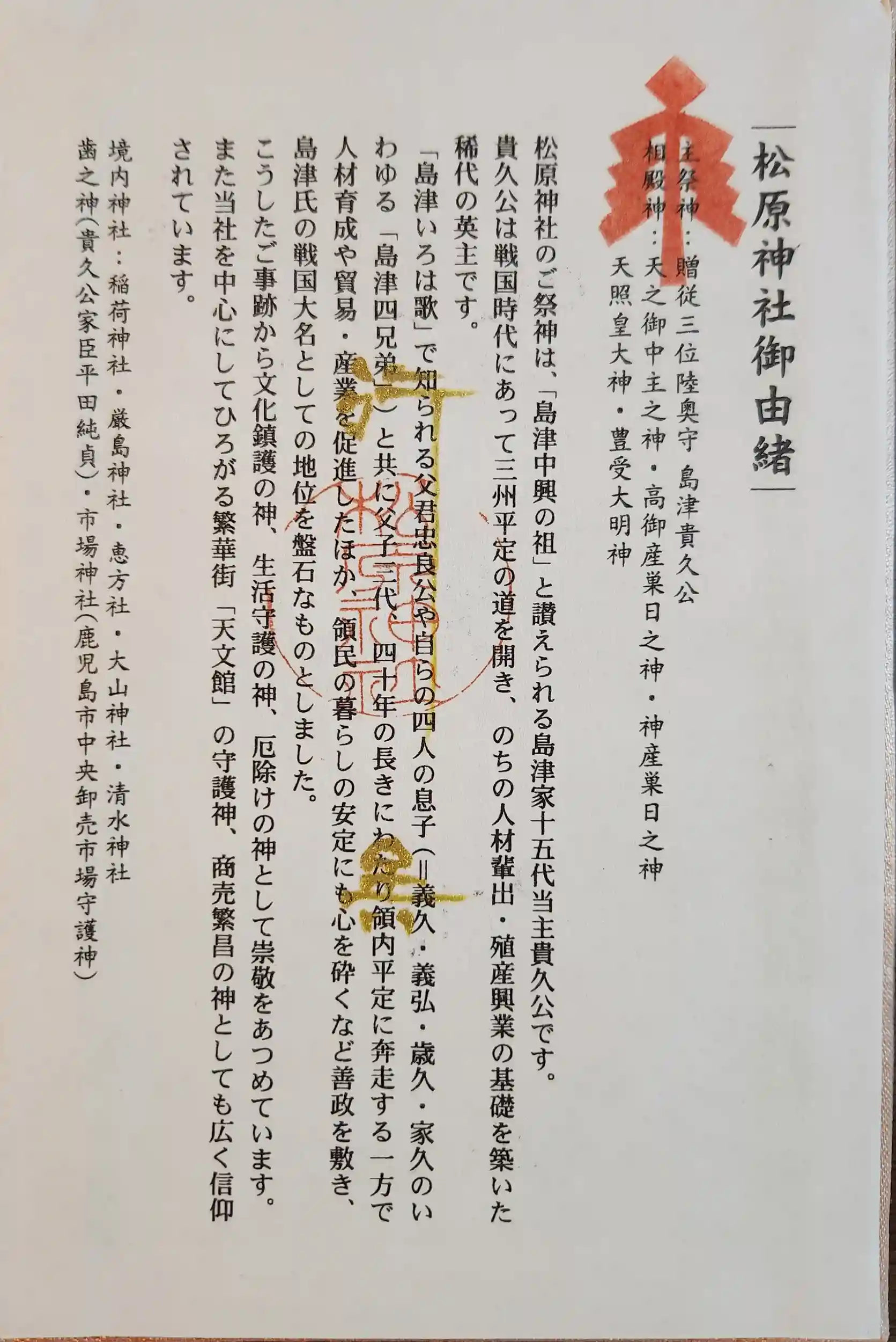 御祭神は、「島津中興の祖」と讃えられる島津家十五代当主貴久公。