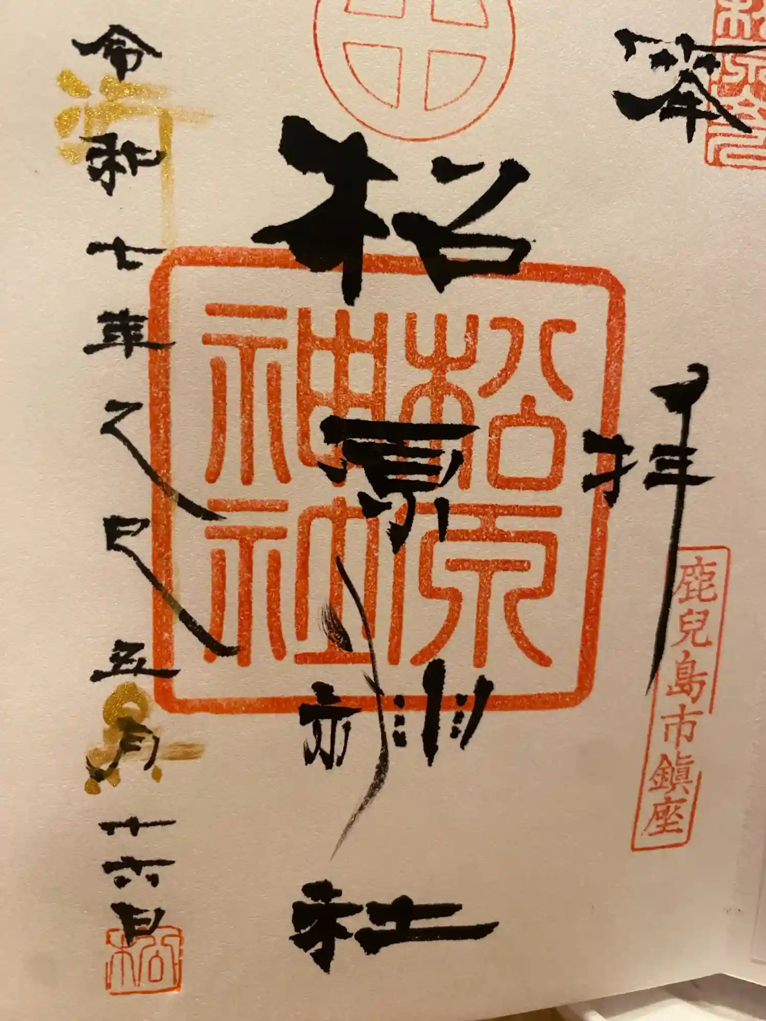 隷書体と呼ばれる美しい文字で書いて頂きました。薩摩らしい丸に十字の朱印も素敵ですね。