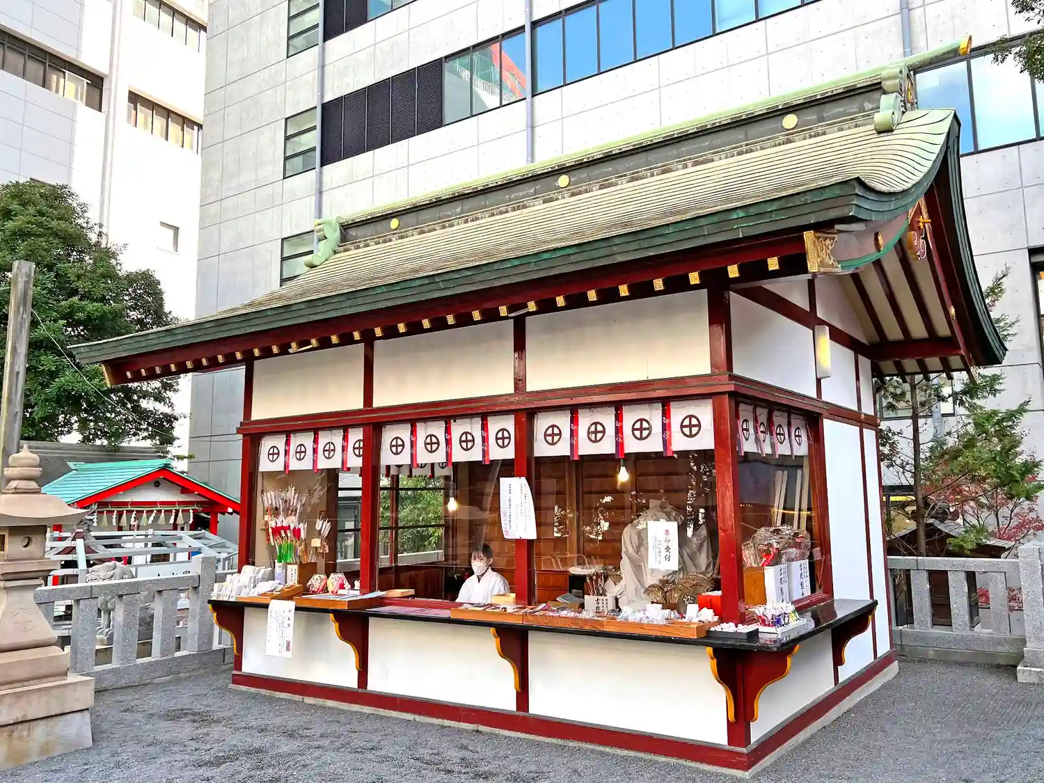 拝殿に向かって左後ろにある<授与所>。御朱印はこちら。
