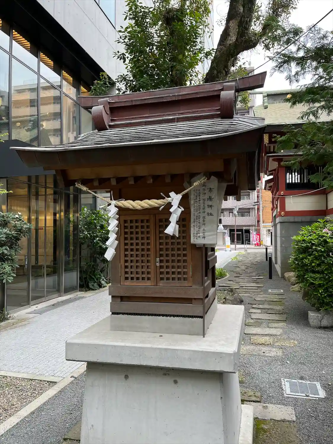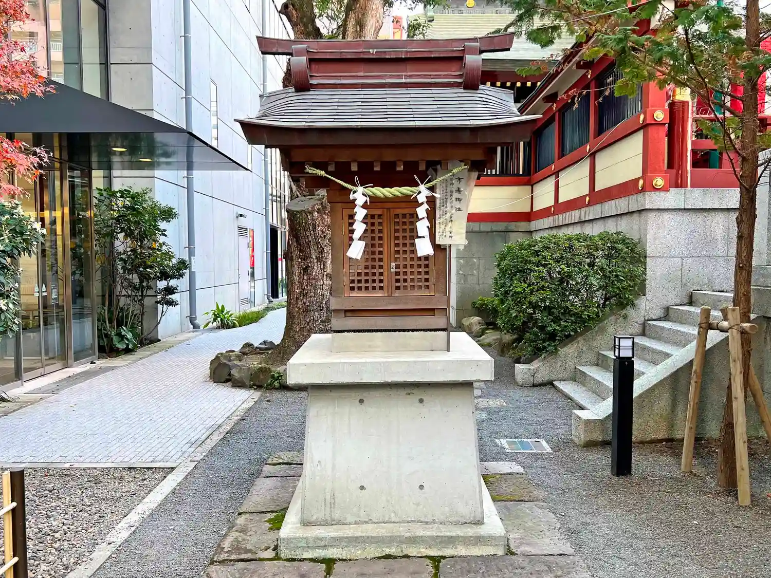授与所の裏手、瑞垣の外側にある<市場神社>。
