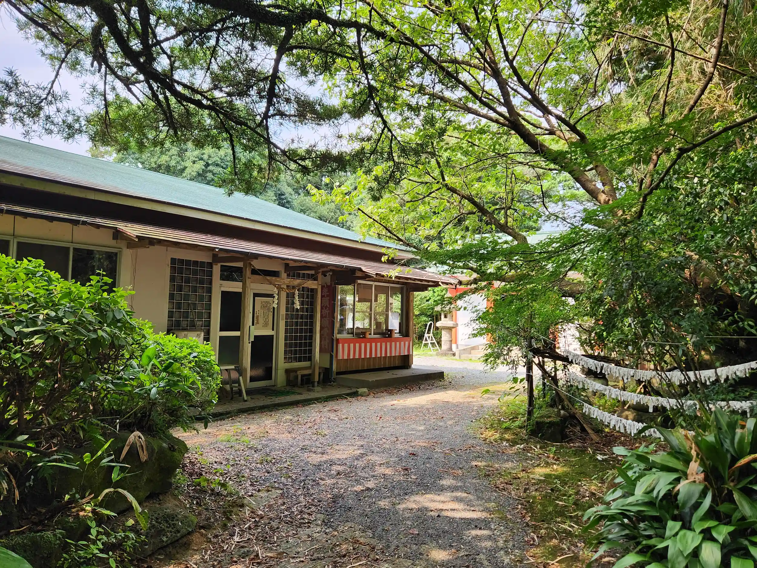 さて、鳥居とは反対方向に進むと公民館っぽい感じの社務所があり、その先に社殿が見えました。