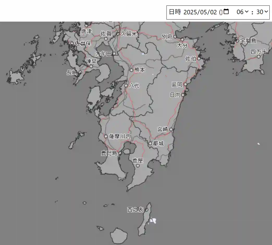 朝6:30の鹿児島県の雨雲レーダー