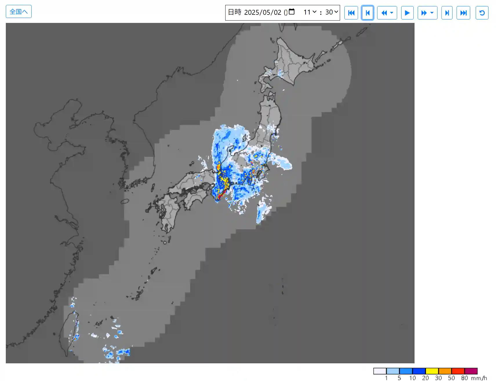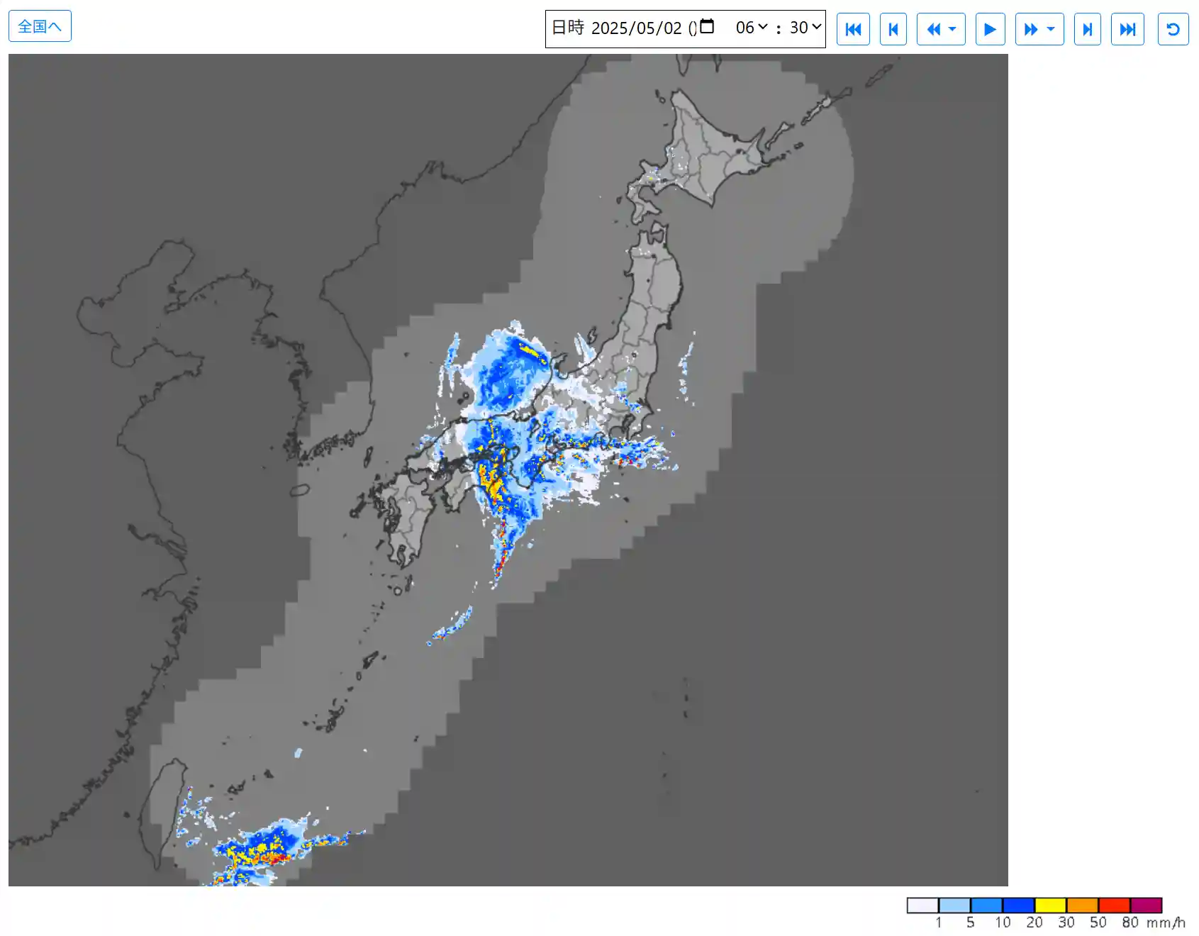 朝6:30の全国の雨雲レーダー