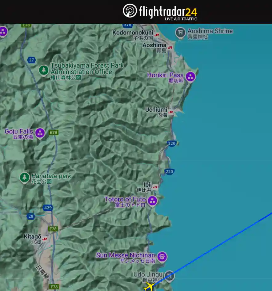 後でフライトレーダーを確認したら鵜戸神宮は右側の席からじゃないと見えなさそうでした💦