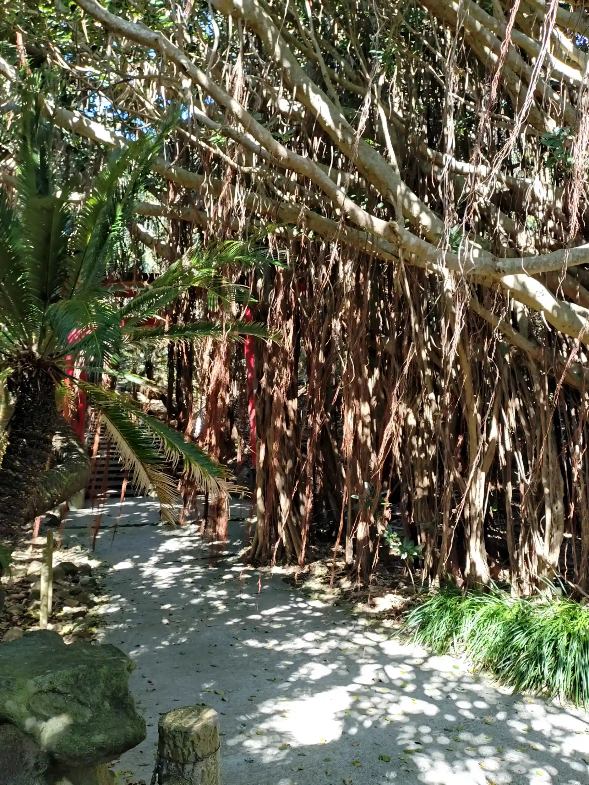 ガジュマルの木を掻き分けながら参道へ