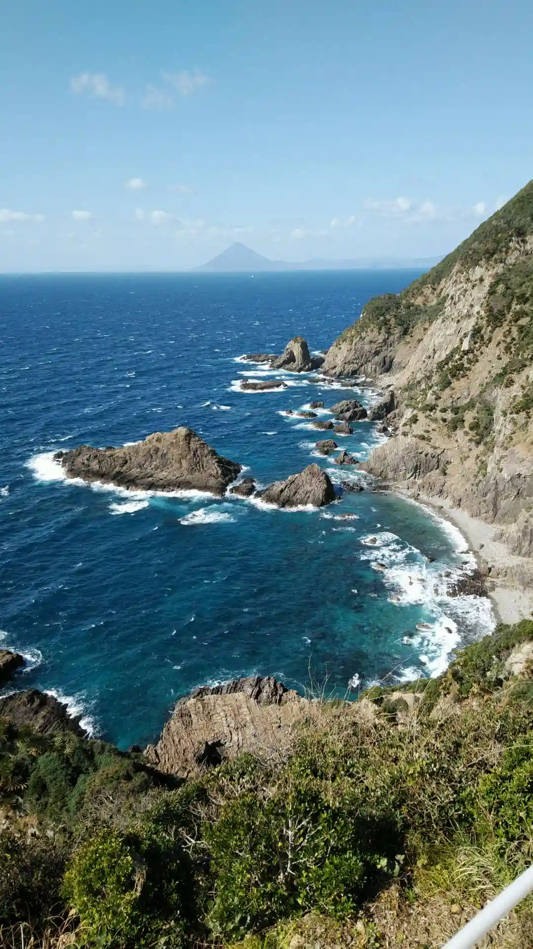 展望台から薩摩半島の開聞岳。