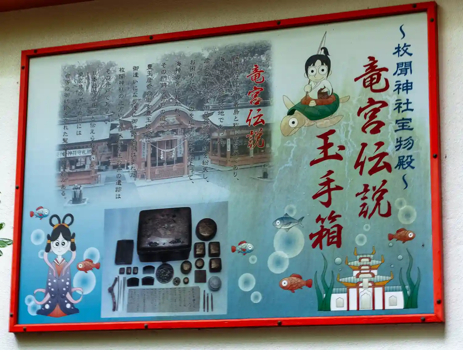 当社では「竜宮伝説の玉手箱」として紹介している。(写真は説明看板を撮ったもの)