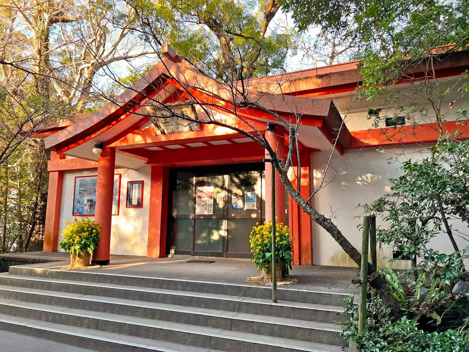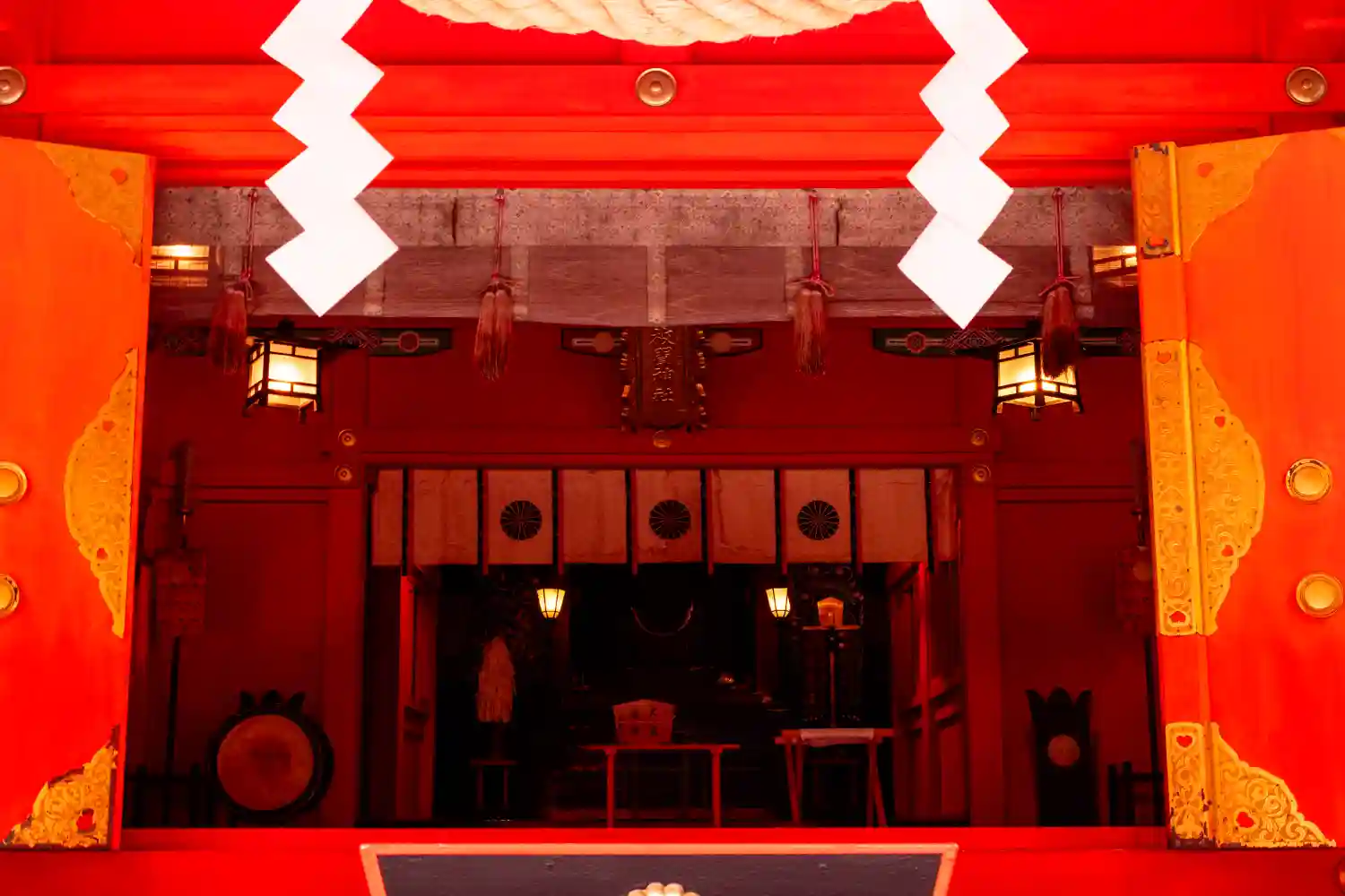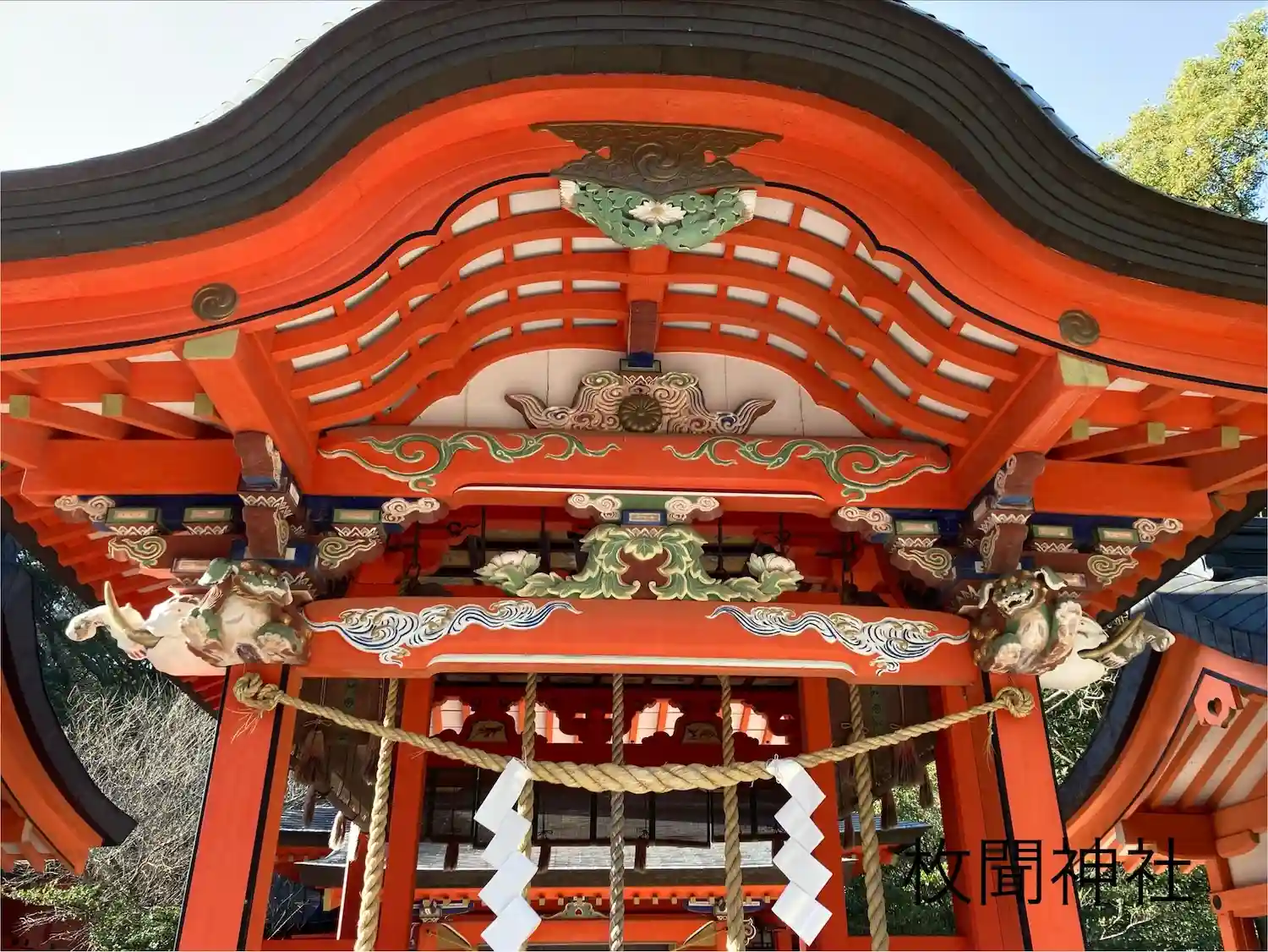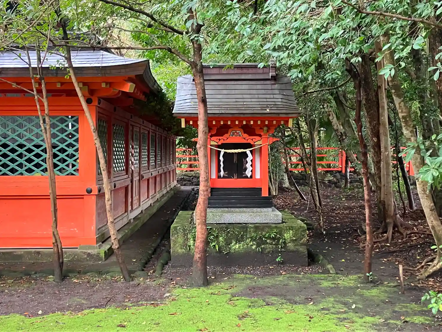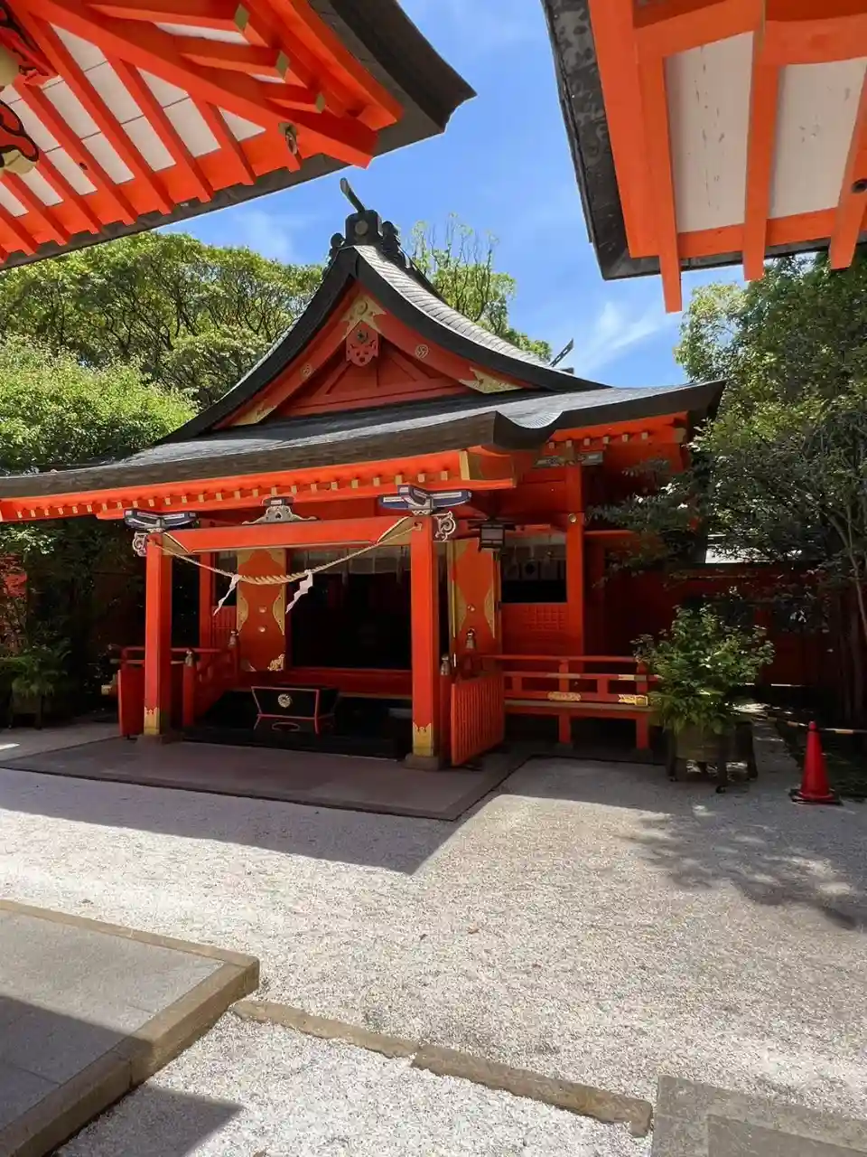 朱塗りの社殿が…