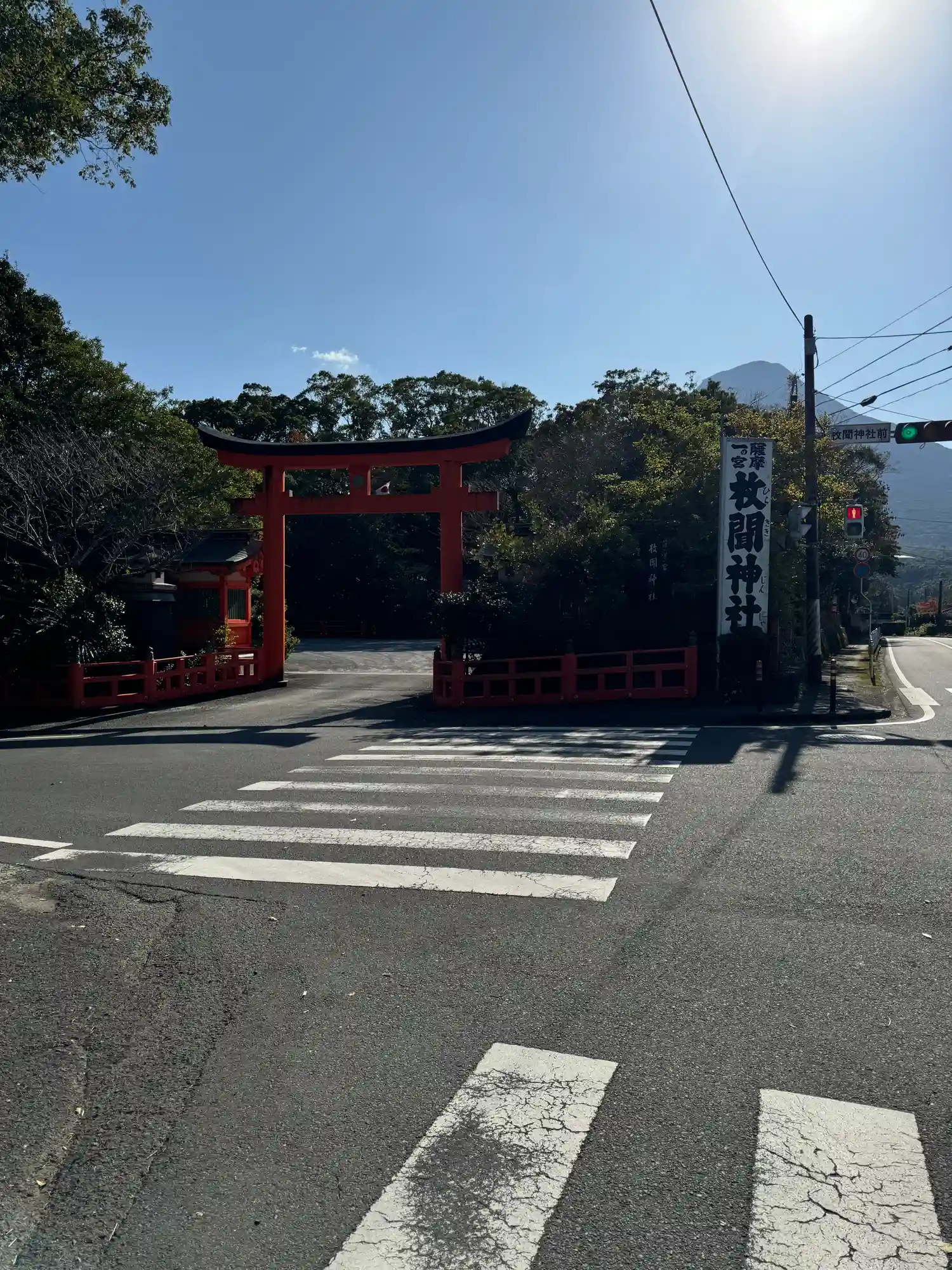 背後に開聞岳がみえてパワーを感じる神社でしたよ。