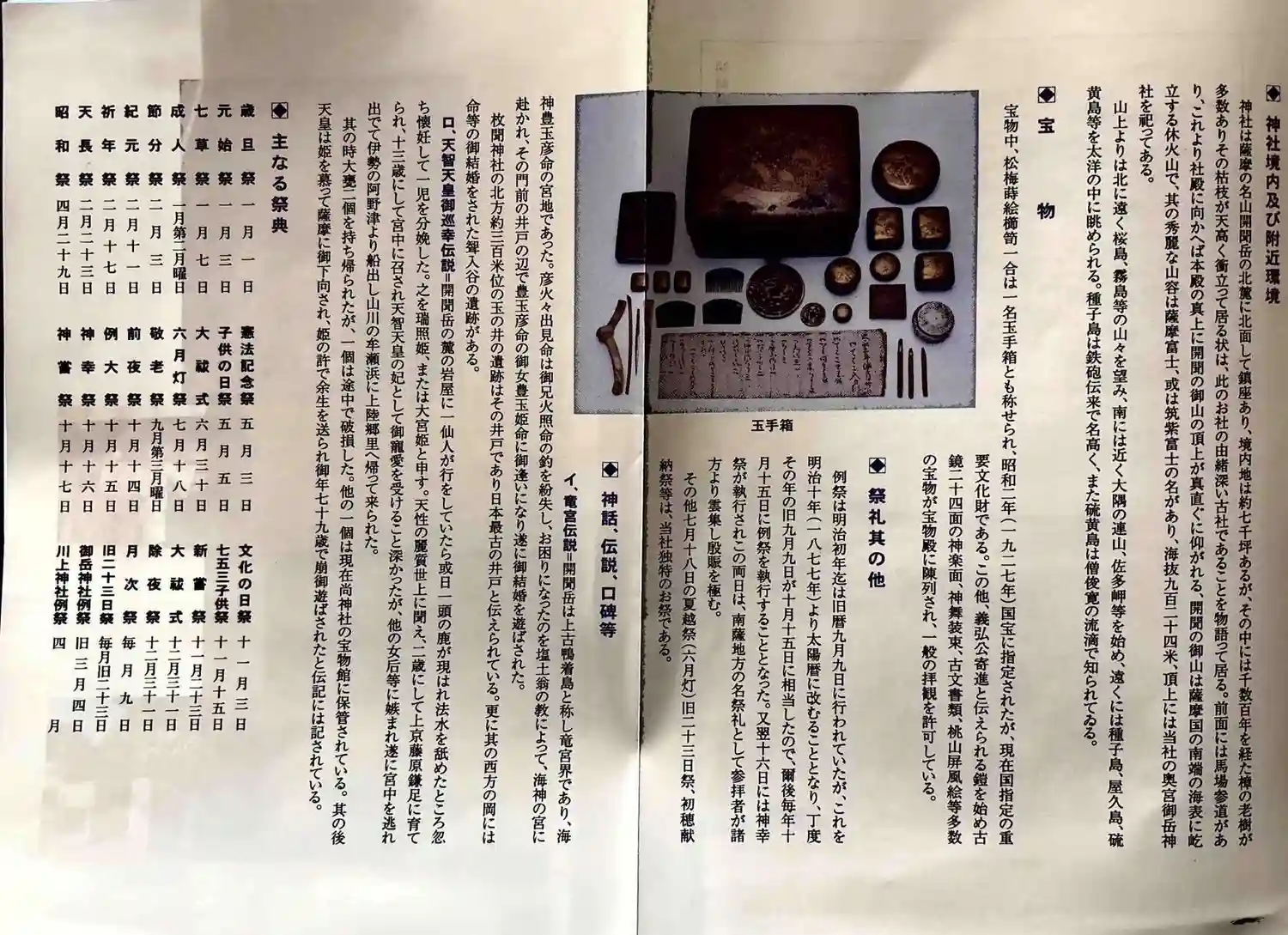 枚聞神社(ひらさきじんじゃ, 708年) 本殿, 松梅蒔絵櫛笥(重文), 主祭神は大日孁貴命, 薩…