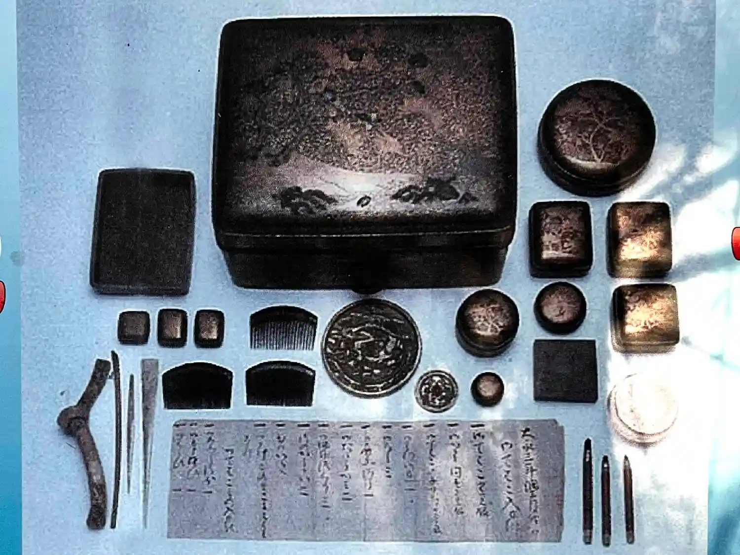 宝物殿には国指定の重要文化財である<松梅蒔絵櫛笥>が収められている。松と梅の蒔絵で飾られた女性用の化粧用具箱。