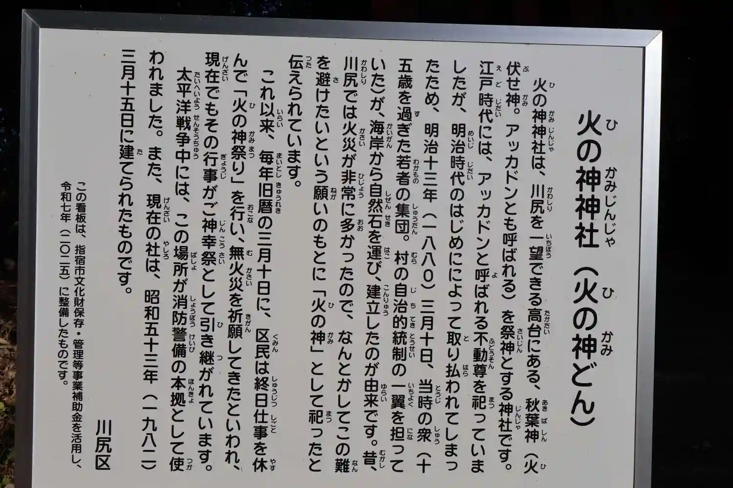| ご祭神 | 秋葉神 天照大神 |