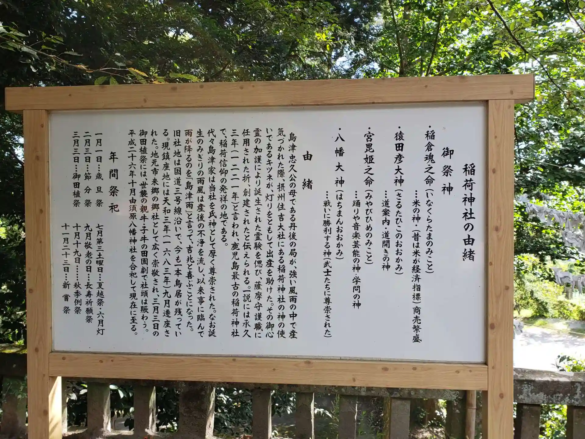 一説には承久三年(1221年)と言われ、鹿児島では最古の稲荷神社とされる。