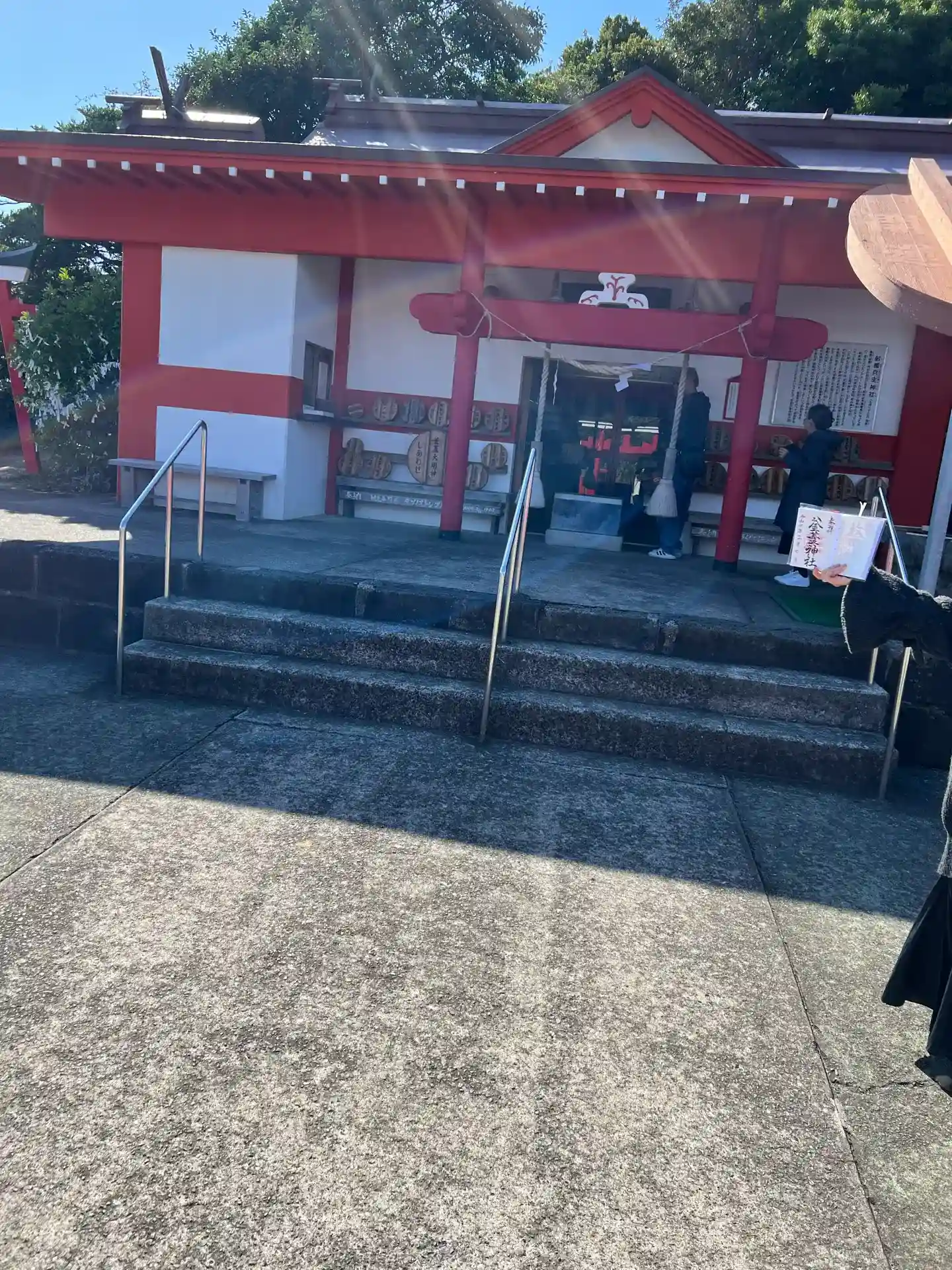 鹿児島県南九州市頴娃町にある射楯兵主(いたてつわものぬし)神社、通称釜蓋神社に参拝⛩️頭に釜の蓋を乗せて鳥居から拝殿まで落とさずにお詣りできれば願いが叶うという。みんな頭に蓋を乗せて歩いていた。御朱印はシール式のものが書置きでありました。