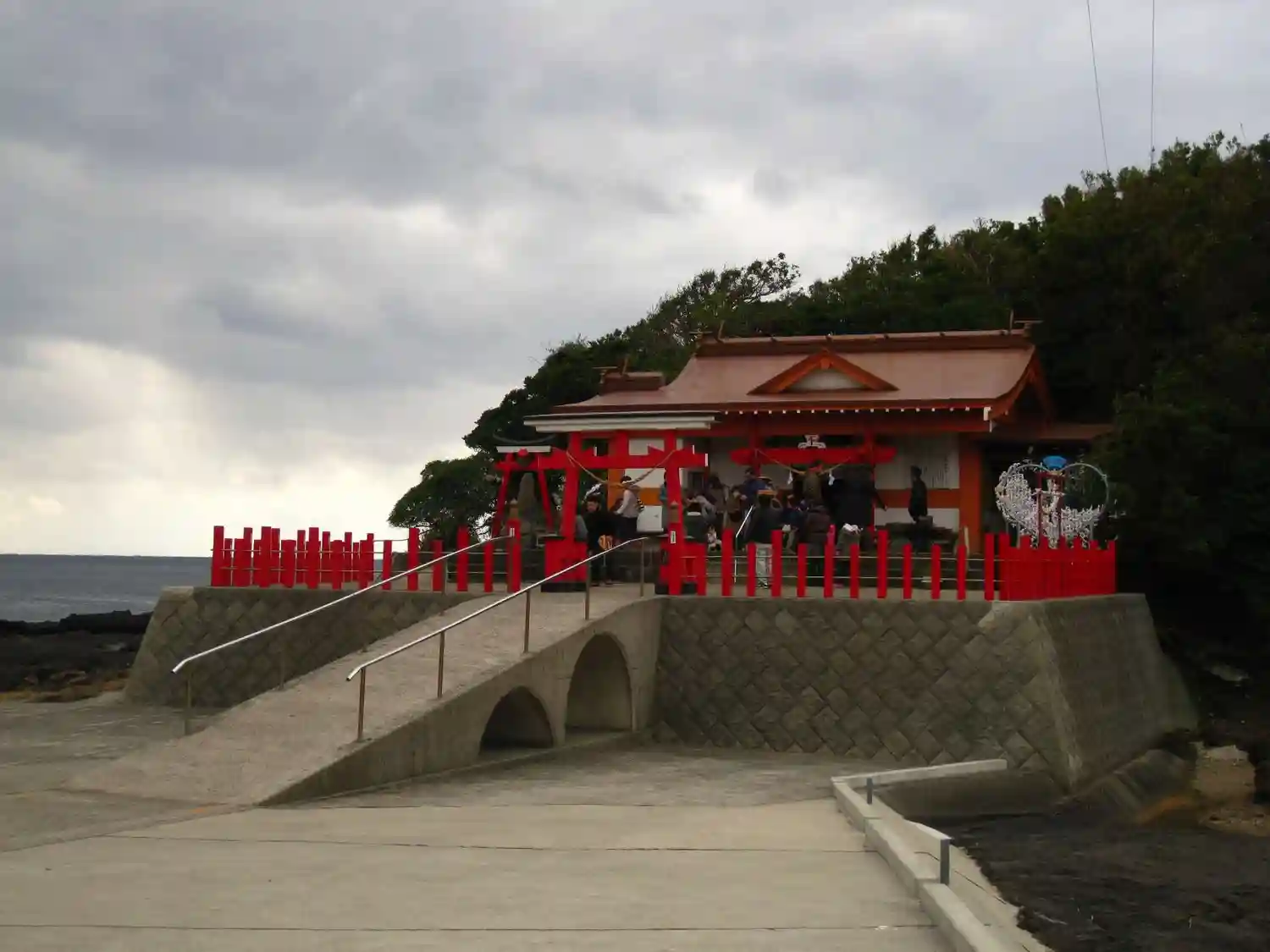 大きな赤い鳥居をくぐって海岸沿いを歩いて行くと 一際目立つ神社が見えて来る⛩️