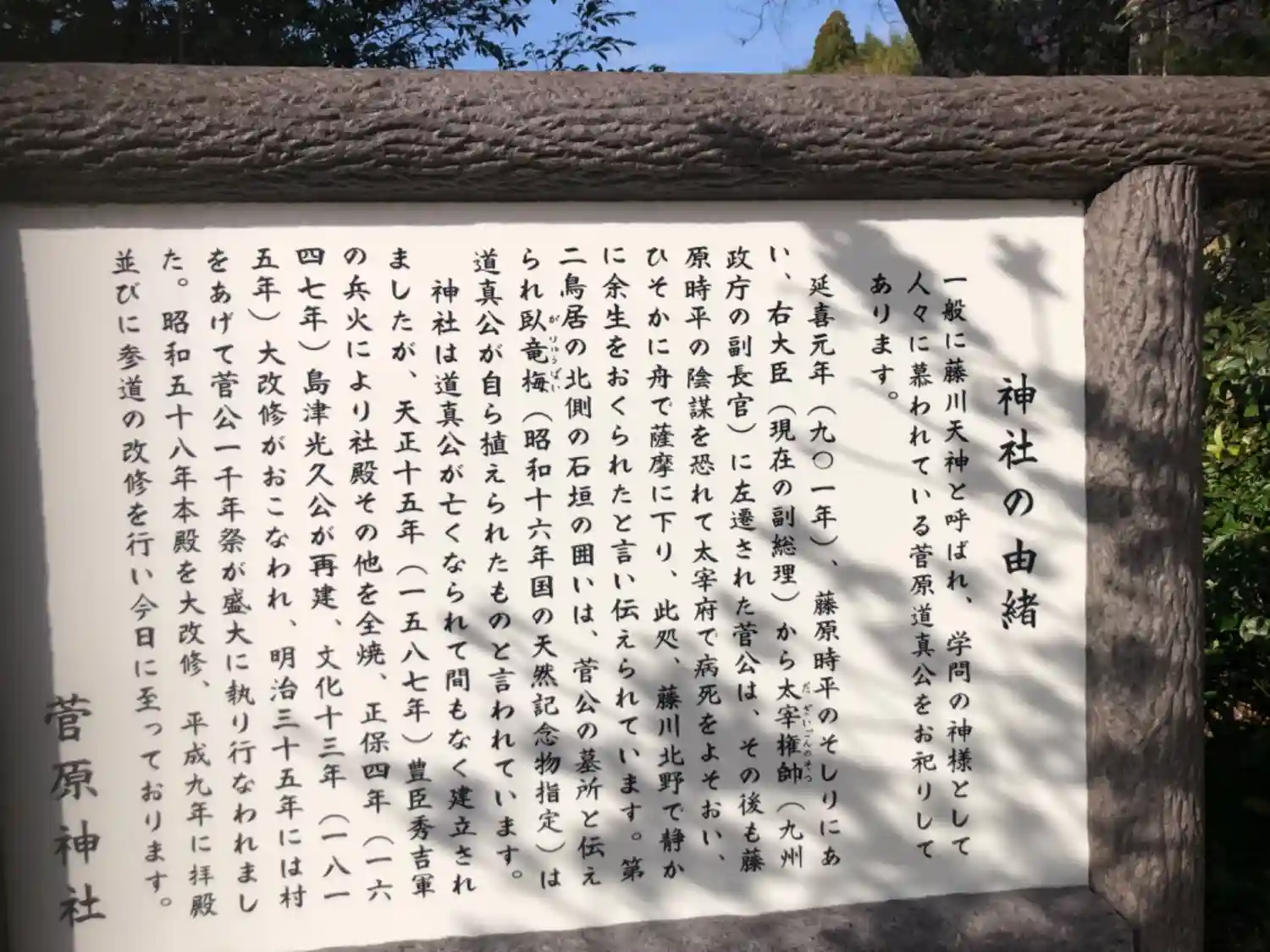 菅原道真公が手植えされた臥龍梅と呼ばれる梅の木が有名です。