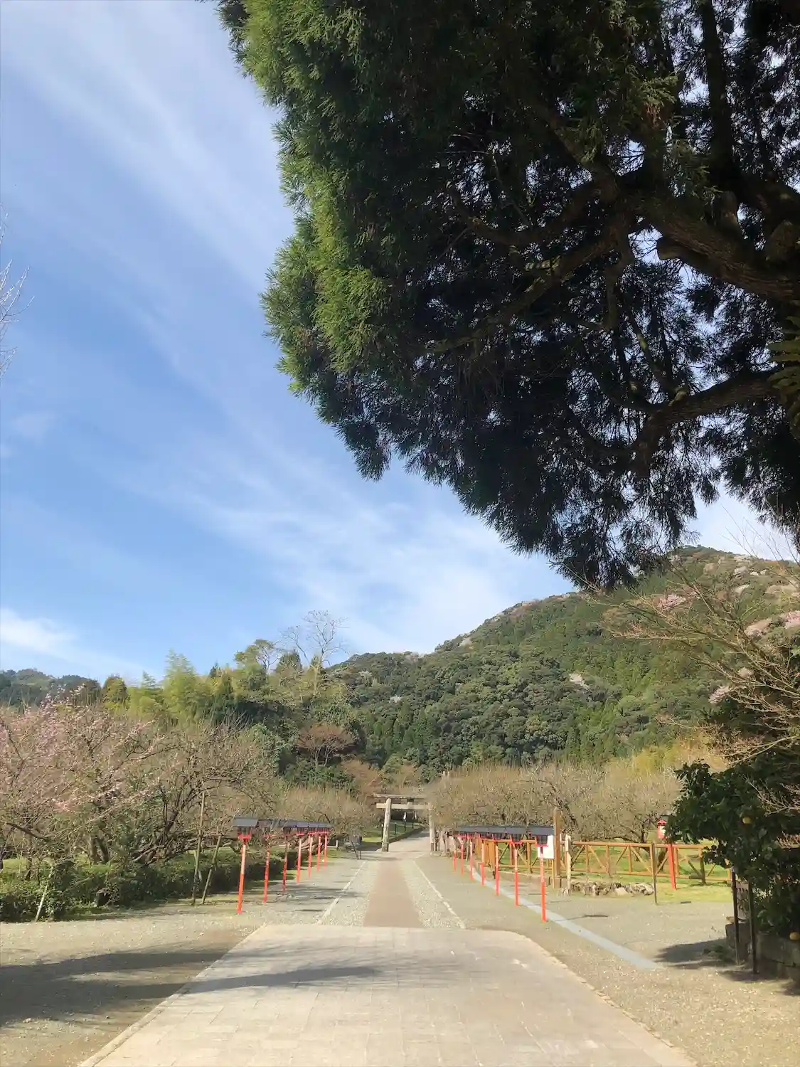 梅の臥龍梅が有名で、神社の参道にはたくさんの臥龍梅が植えられています。