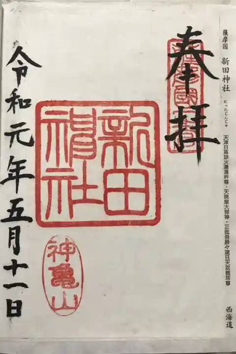 ニニギが川内川から水を引いて新しく田んぼを作った故事から、古くは新田宮と称していた。