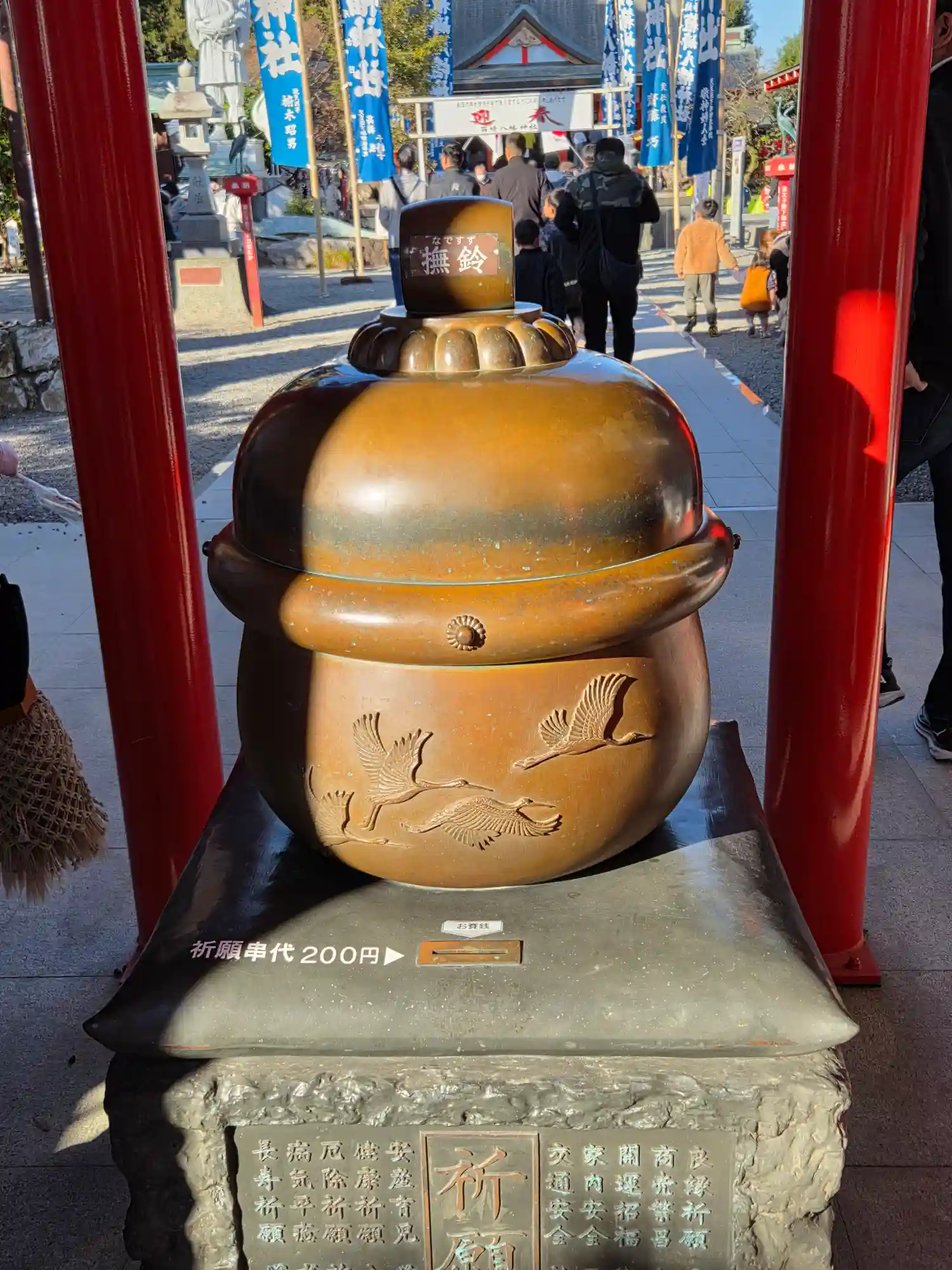 鳥居横には鶴