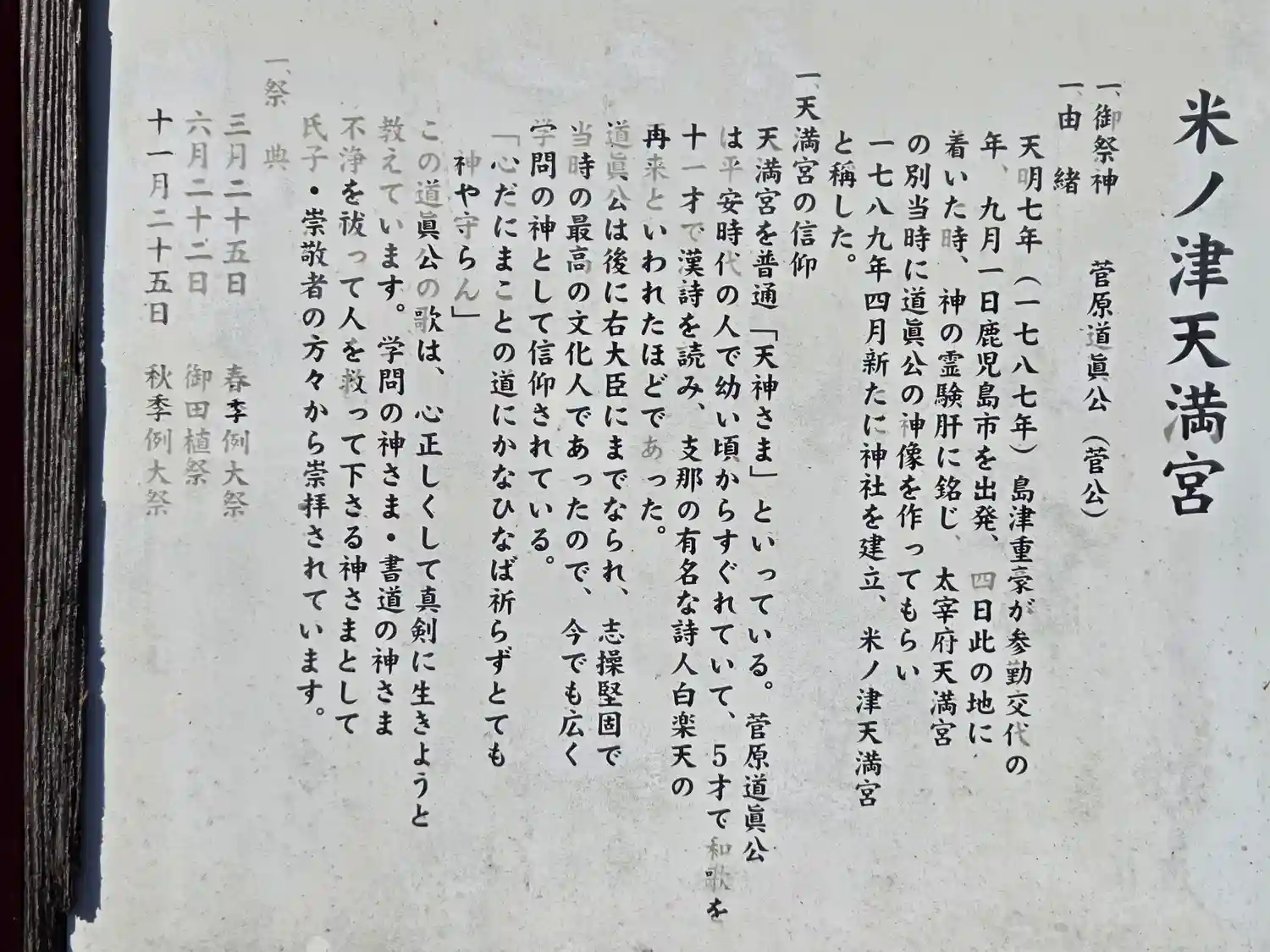 御祭神:菅原道眞公