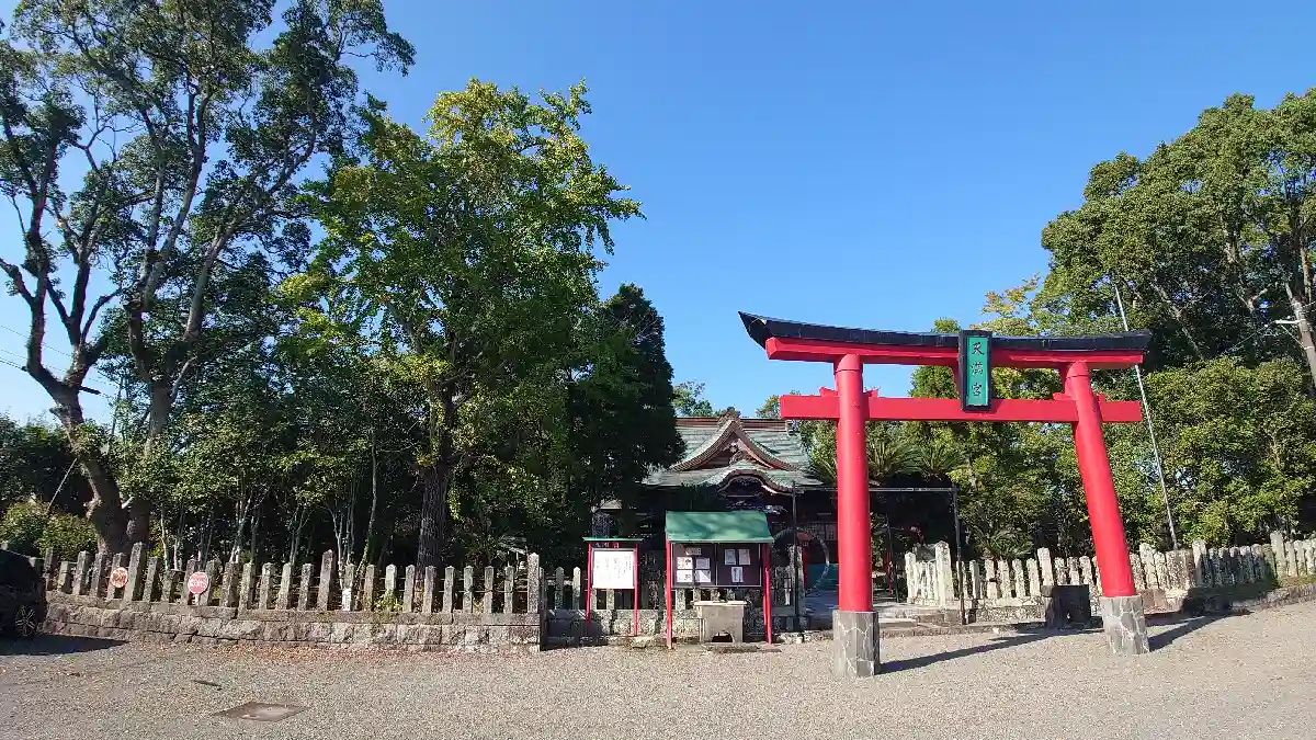 国道3号から海側に入った場所に鎮座しています。無人ですが御朱印は近くの加紫久利神社でいただけます。