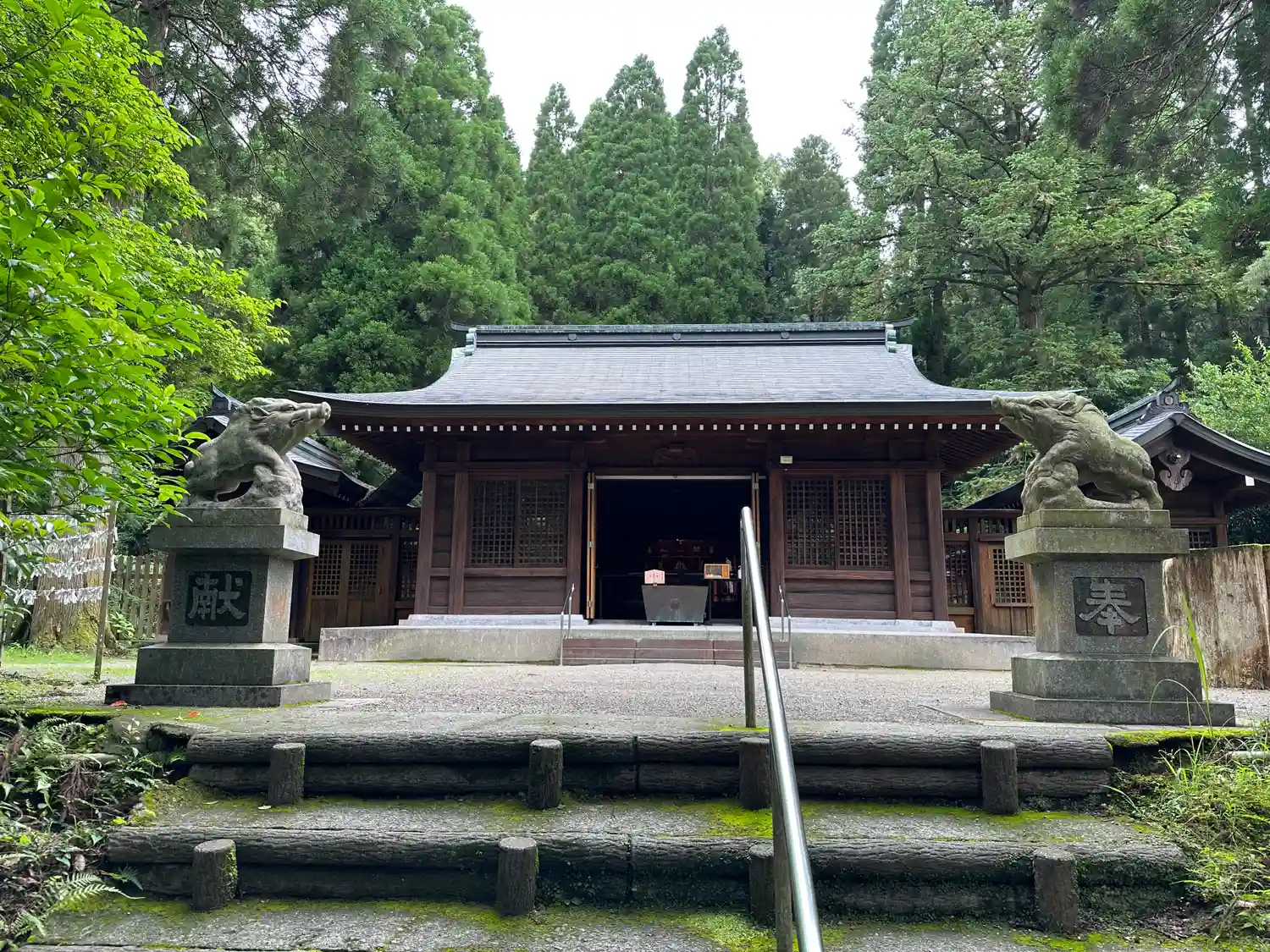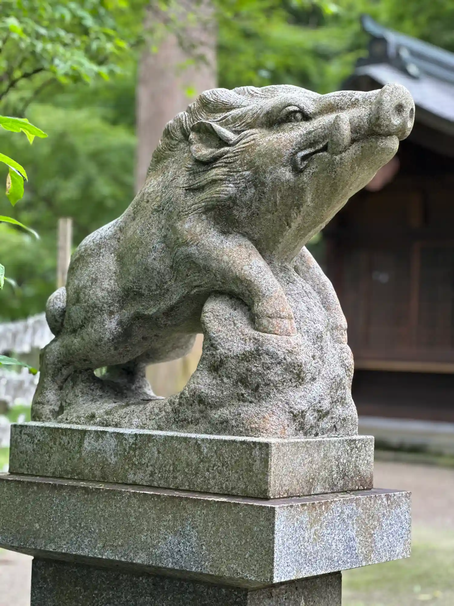 社殿です。狛犬ではなく、猪🐗です😃