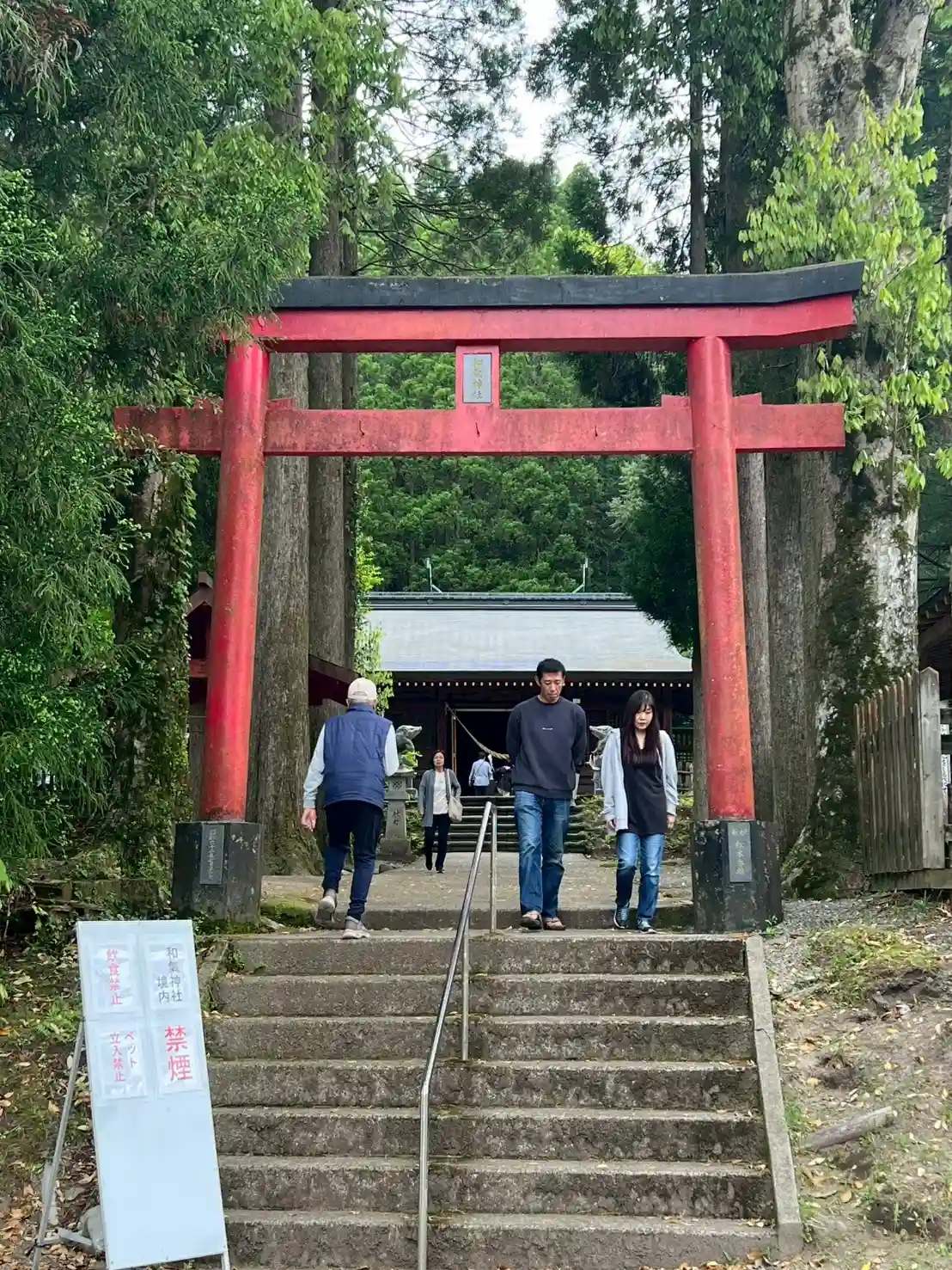 犬飼の滝展望台と道路をはさんで反対側に和気神社への登り口があります。別に車で登れる道もあるそうです。