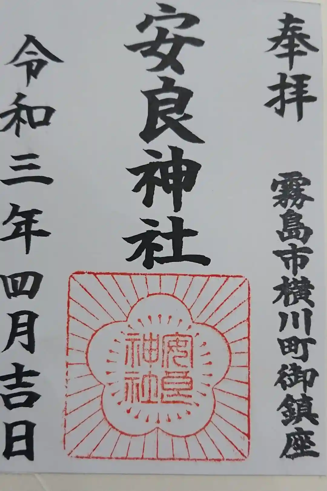 安良神社の御朱印・御朱印帳