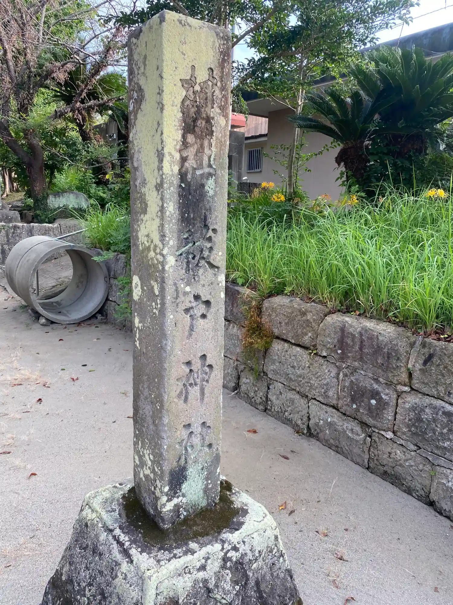 当社は、JR日豊本線・国分駅の西方300mの、大きめの通りに面した平地にある。地名の通り往古は国府が存在した大隅国の中心的な場所とのことだが、現在では疎らに住宅が建つのどかな場所となっている。南側を道路に面した境内は、少しだけ高くなっていて、草木は少なくて明るく、旧村社らしくこぢんまりとした造り。社殿と社務所代わりの公民館があるぐらい。少ない樹木はかなりの古木と見え、相当昔から当地に鎮座していたものと思われる。