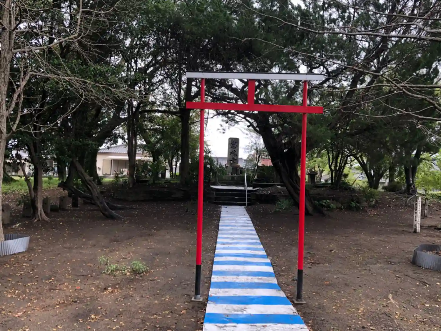 境内東側の奥に立つ<忠魂碑>。簡素だがちゃんと鳥居と参道が付いている。