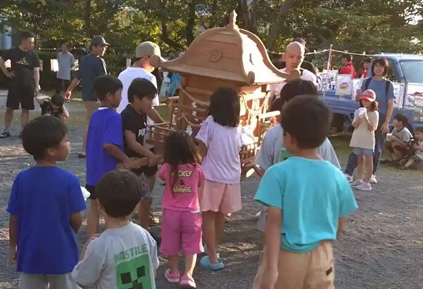 さらに神輿が境内に繰り出され多くの子ども達や大人が「わっしょい。わっしょい」と積極的に神輿担ぎに加わり盛り上がりました