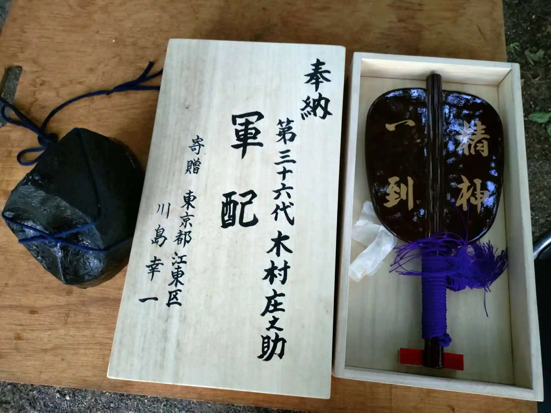 子ども相撲祈祷で使用した第36代木村庄之助氏の軍配(レプリカ)