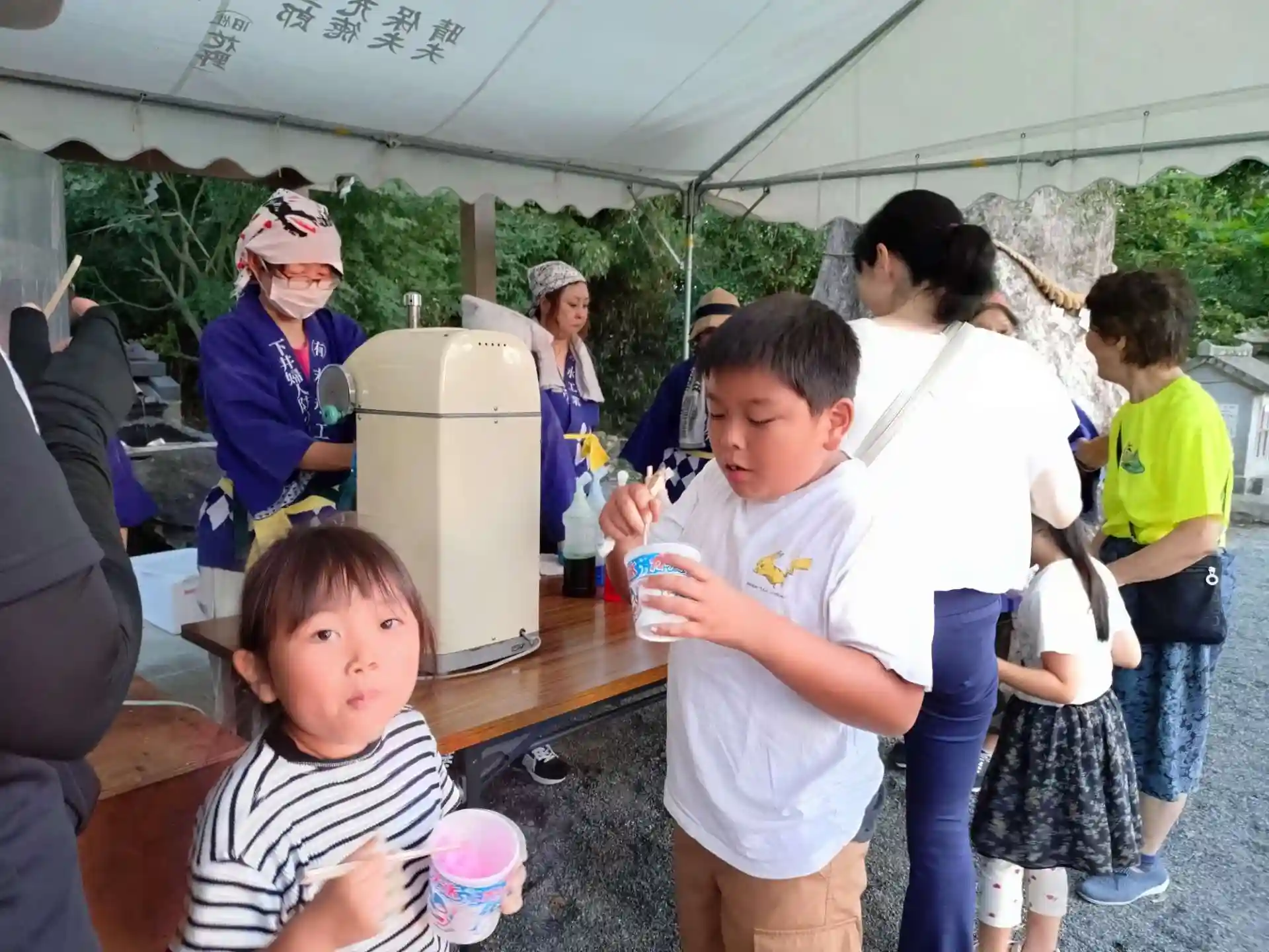 主催の地元下井自治公民館が用意されました200杯分のかき氷や綿あめも無料で提供され完売となり今年も乙宮神社六月灯のお祭りが幕を閉じました