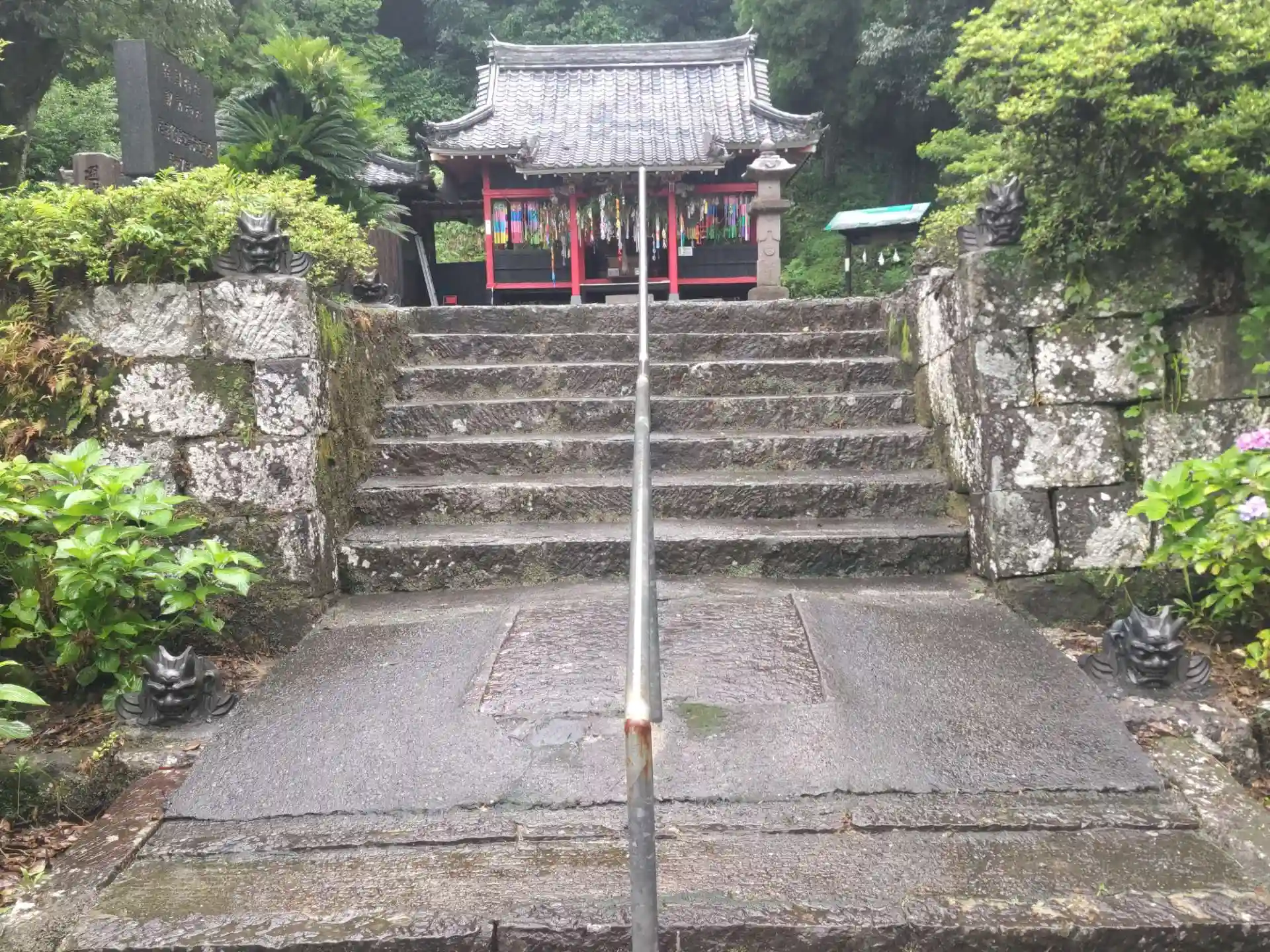 狛犬ならぬ鬼瓦が入口の鳥居周辺に数多く見られました。