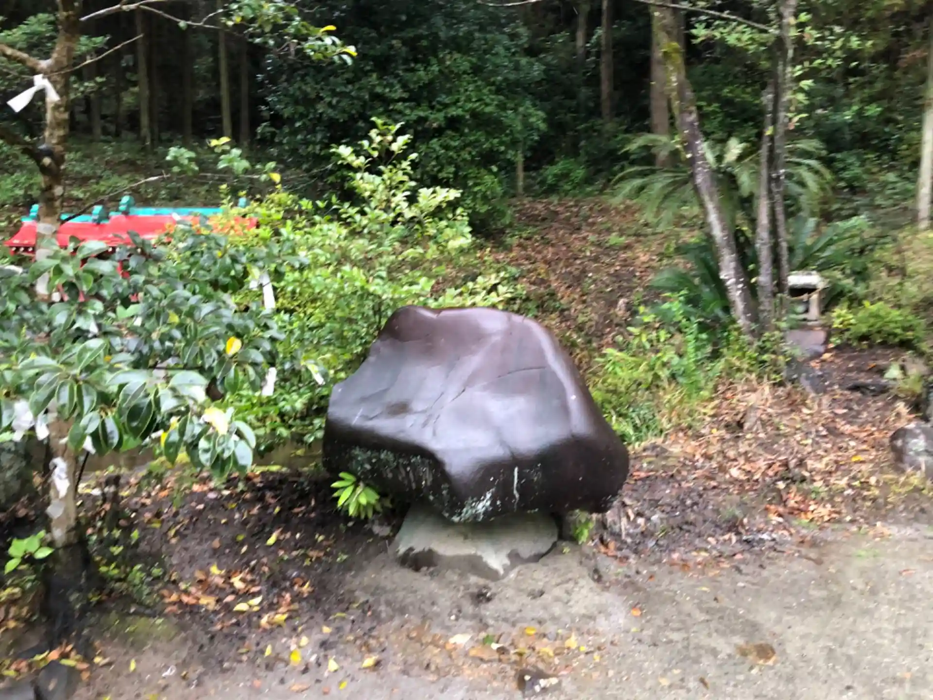 山の近くで人里から少し離れてとても静かな神社でした。朱色の社殿、門の神の社など、開聞神社とよく似た部分がいくつかありますね。