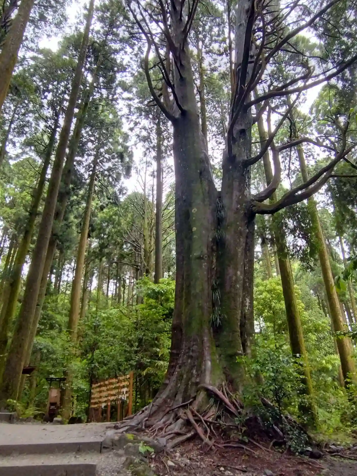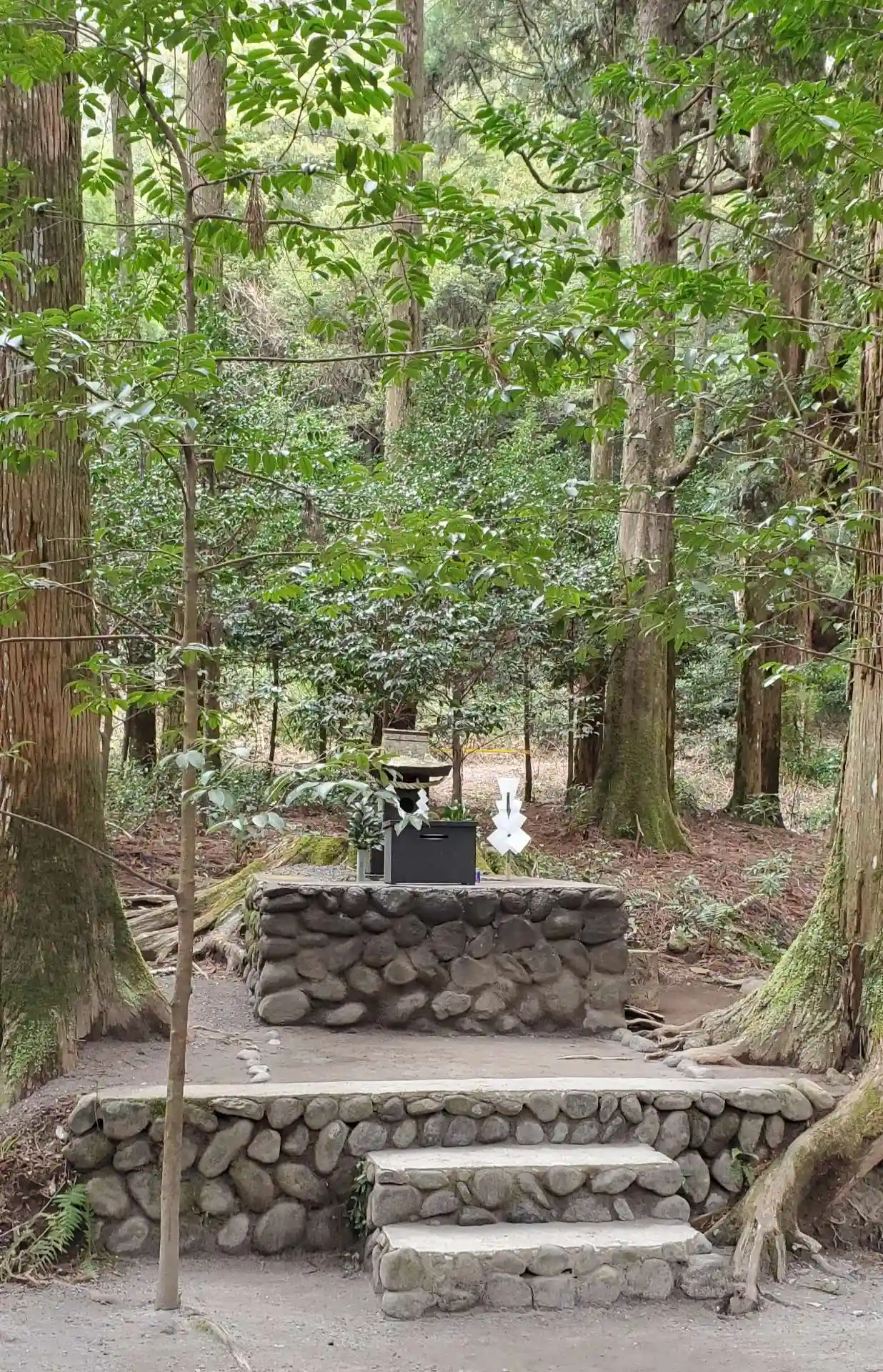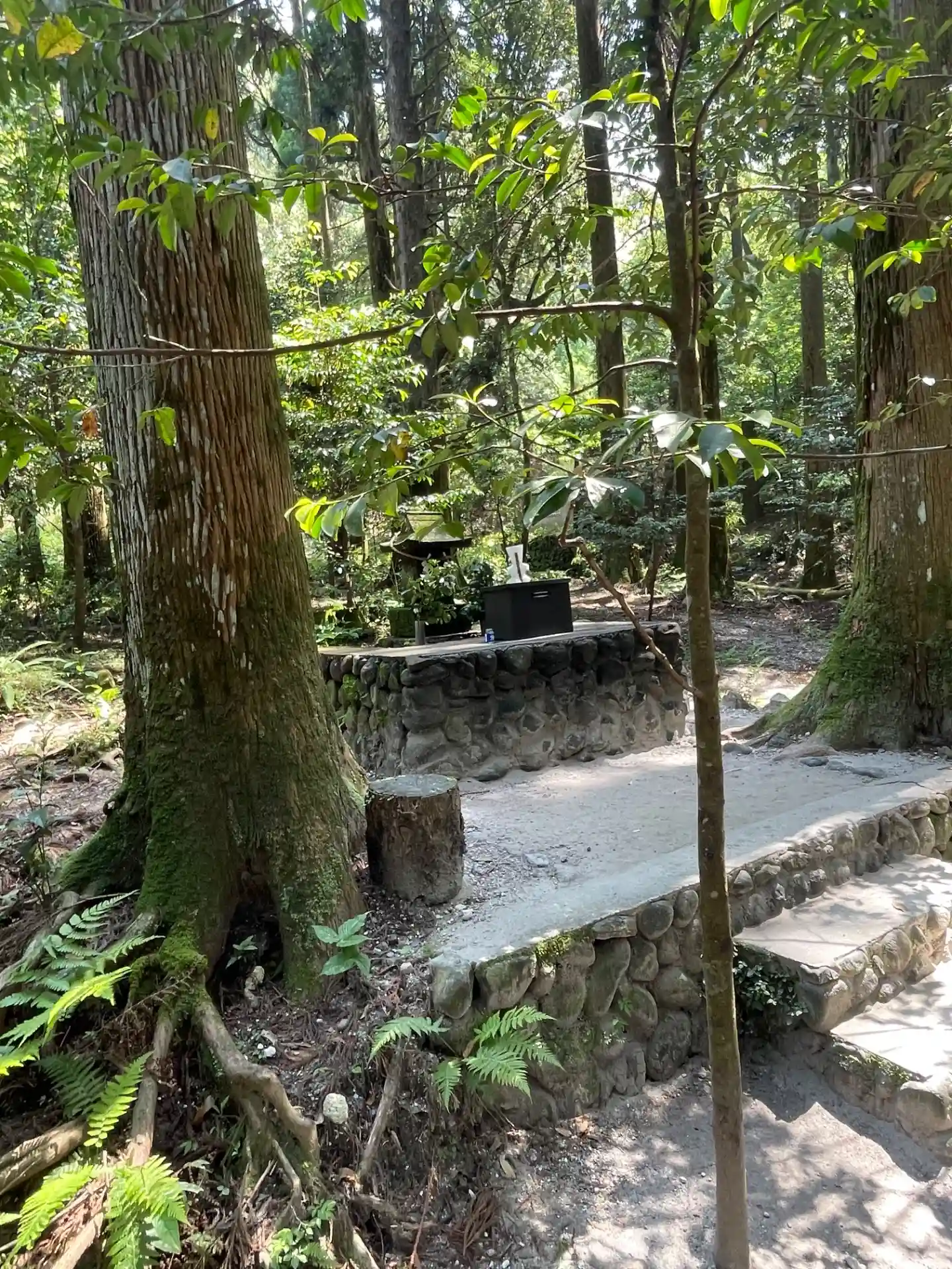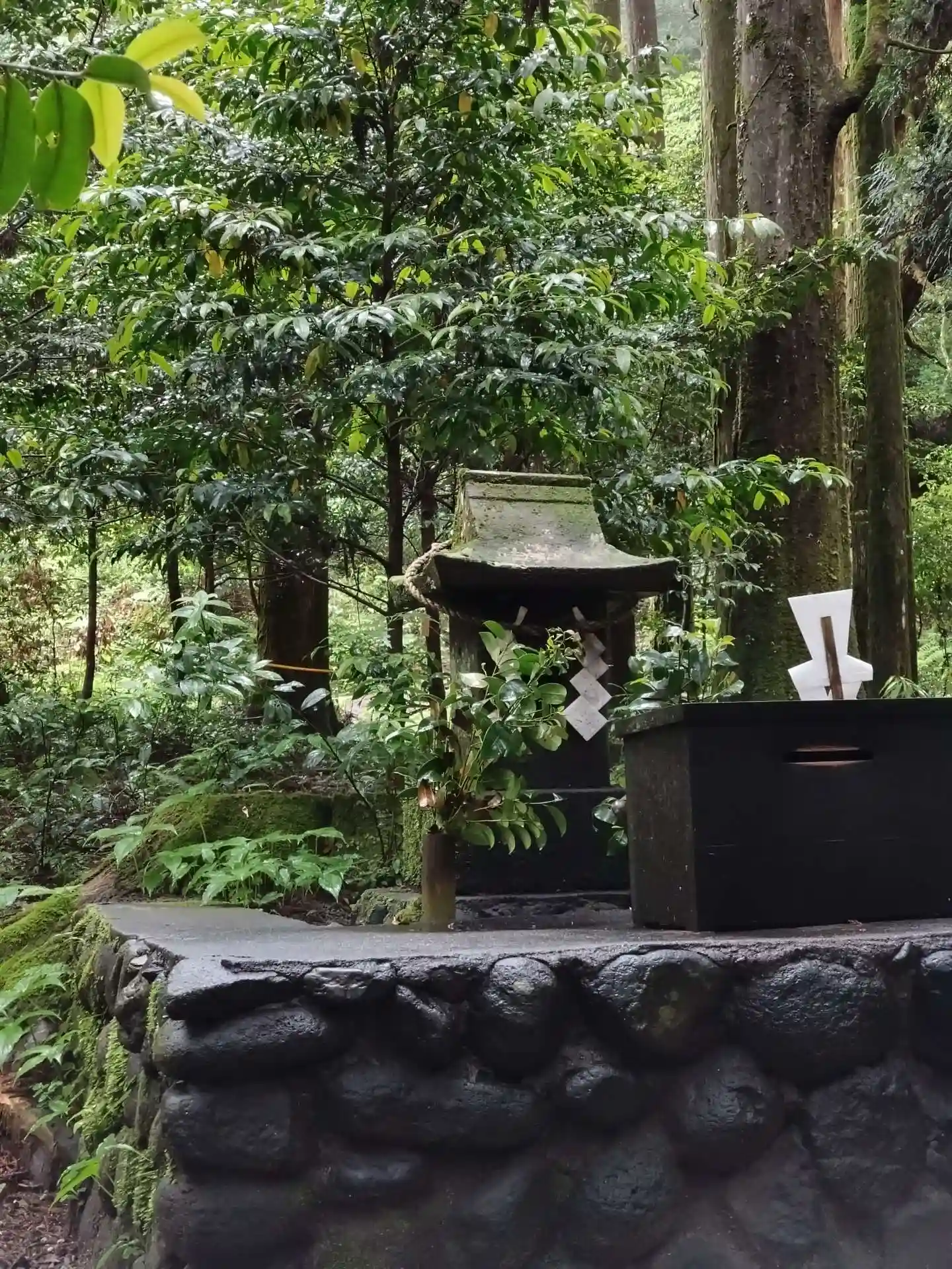 霧島神宮の敷地内の森の中にある山神社様。豪雨でしたが、雨音が木の葉に当たる音がとても心地よく聞こえ…