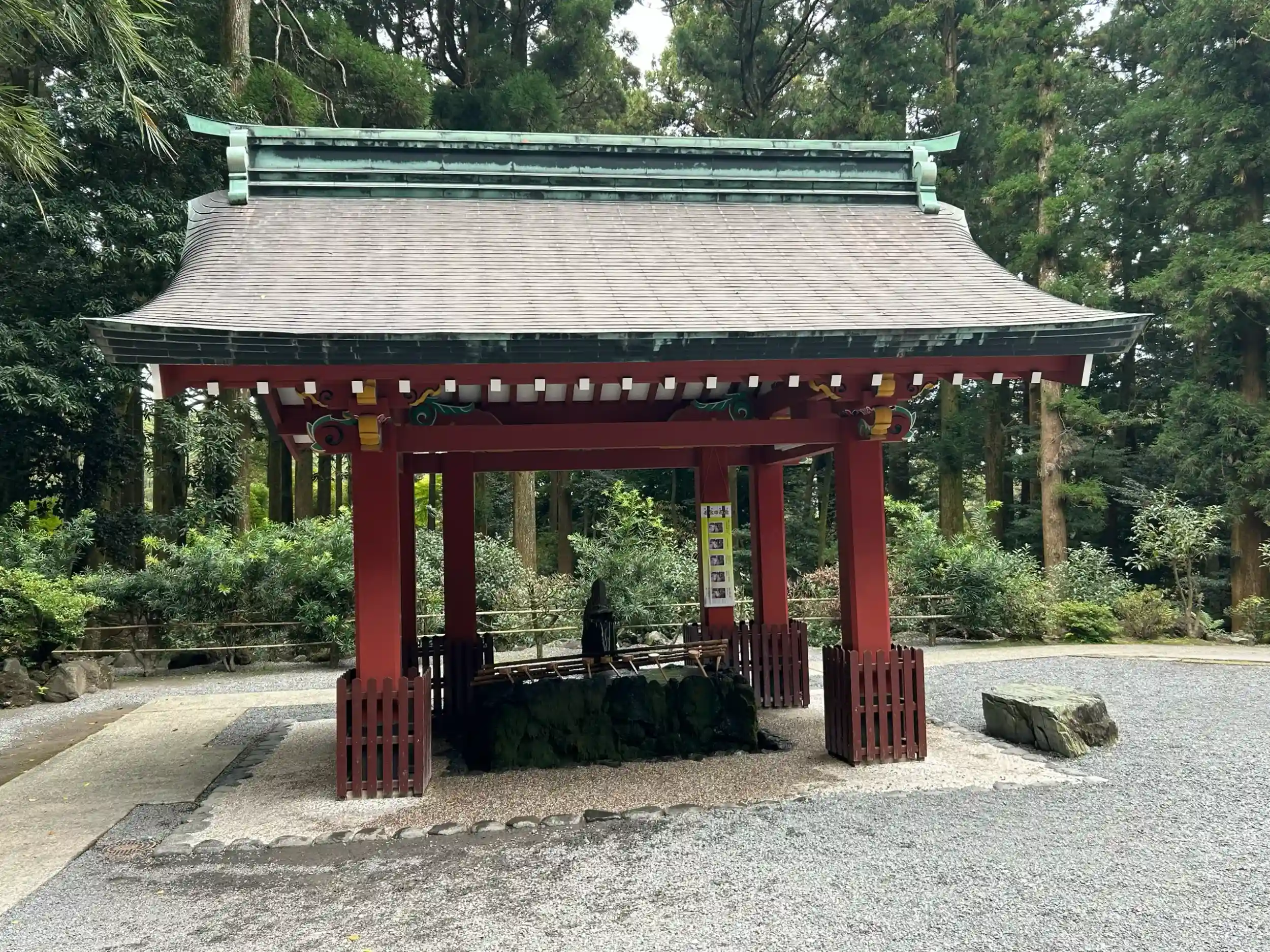天孫降臨神話ゆかりの神宮として、南九州を代表する存在です📖✨現在の 本殿・幣殿・拝殿 は、江戸時代・正徳五年(1715年)に薩摩藩主 島津吉貴公 により再建された社殿⛩️朱塗りを基調とし、精緻な彫刻や極彩色の装飾が施された建築は、2022年に国宝指定 を受けています✨🏅境内は 霧島連山 の自然に囲まれ、スギ🌲・シイ・クスノキなどの常緑樹が多く、