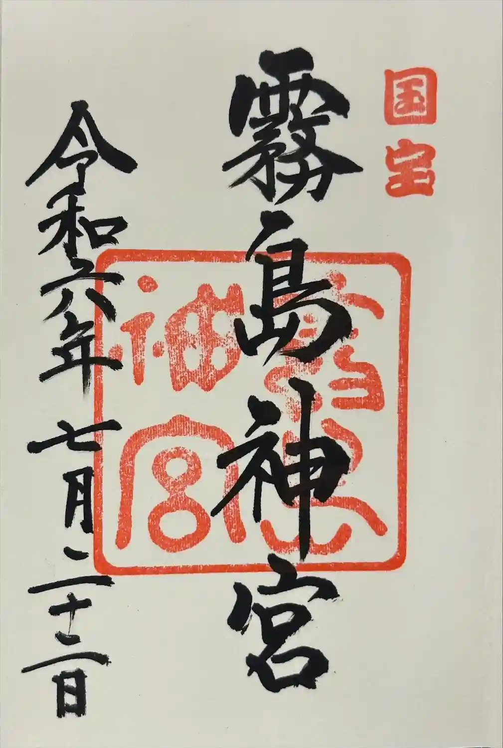霧島神宮、直書きと国宝記念の御朱印です