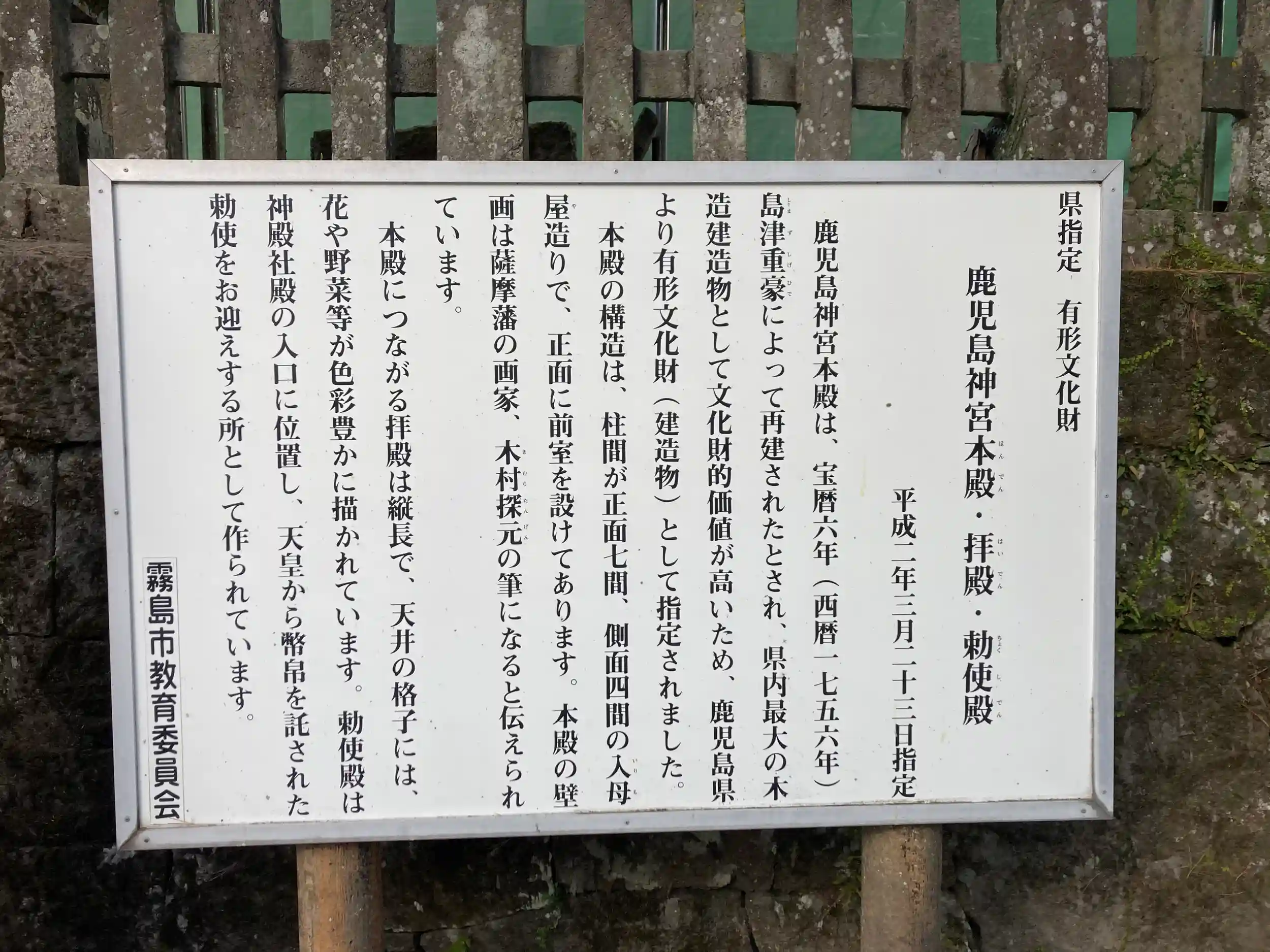 大隈国一宮。様々な植物が描かれた拝殿の天井画など、様々な装飾が施されていて、今年に入り本殿が国の重要文化財に指定されています。