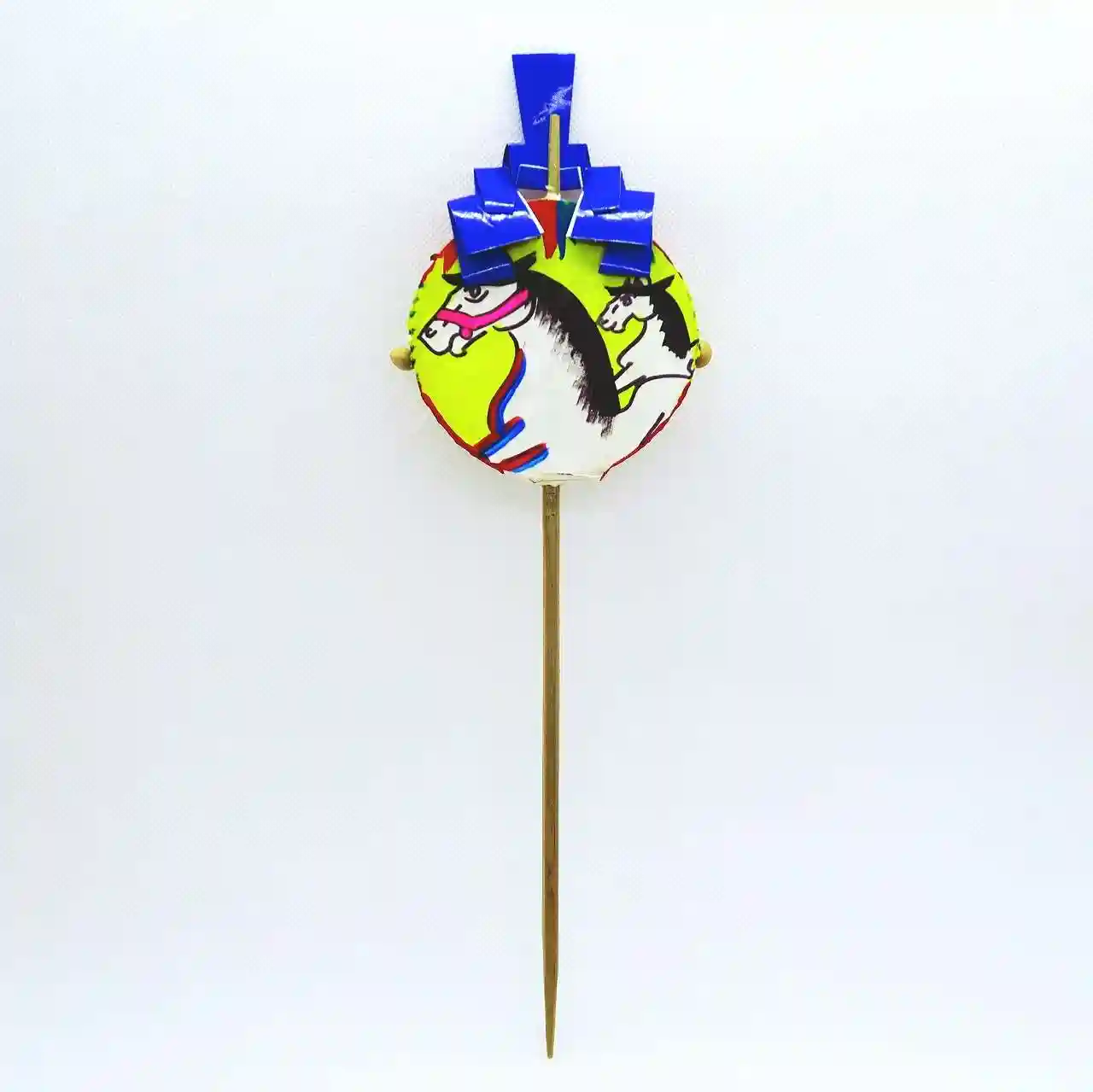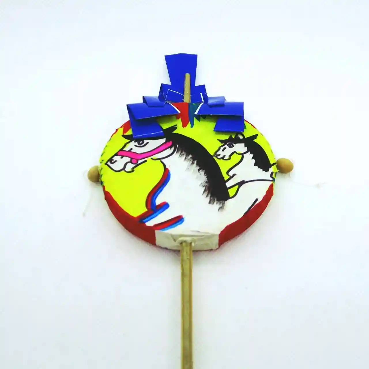 太鼓の両側には大豆が括られた糸が付いているのは「でんでん太鼓」と同じ仕組み。