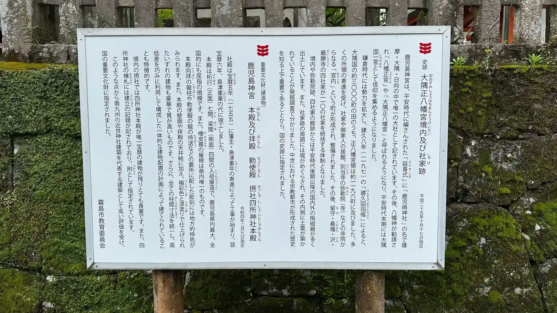社 格:式内社(大)、大隅国一宮、旧官幣大社、別表神社