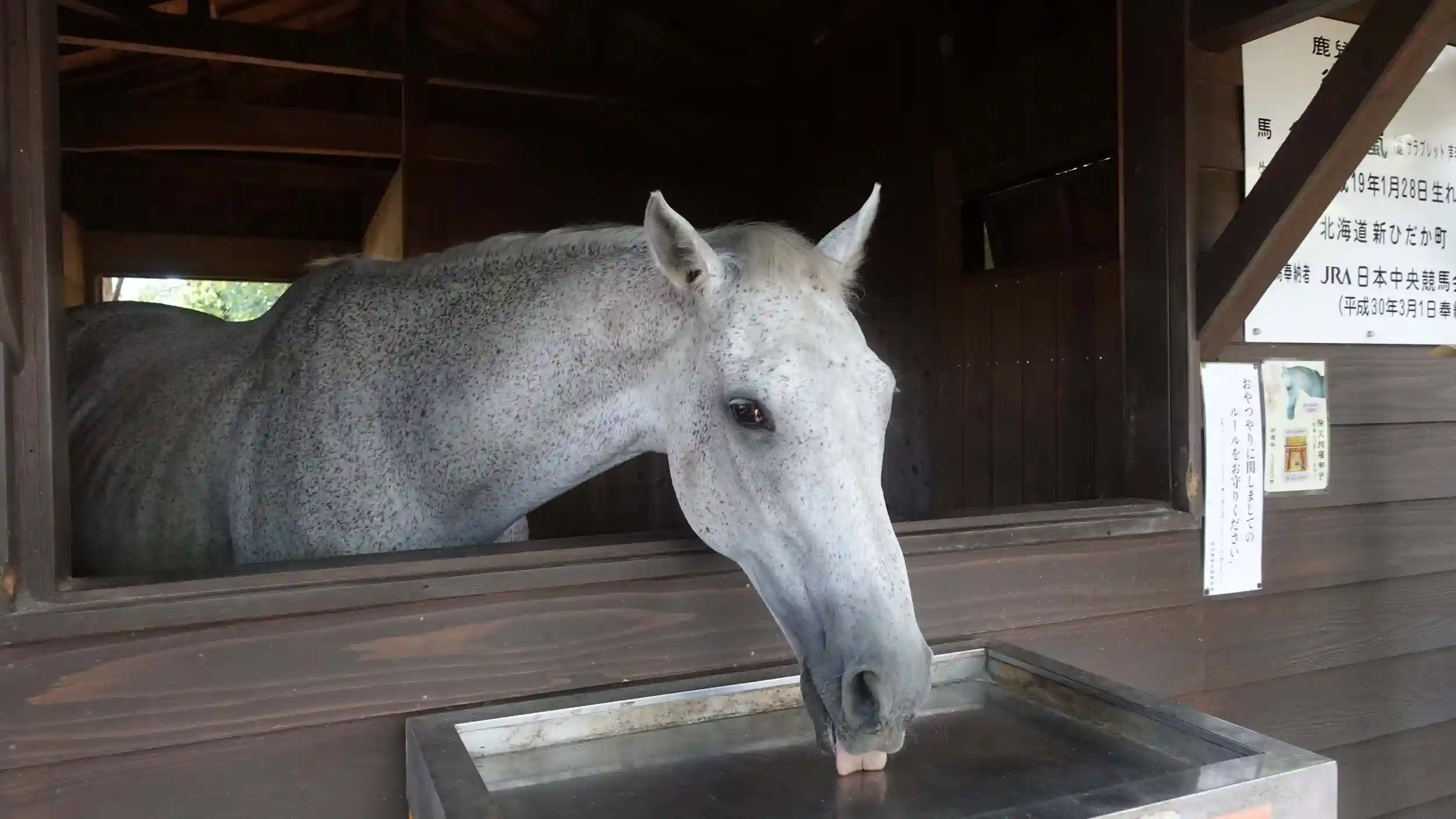 生きている御神馬にニンジンをあげられます。