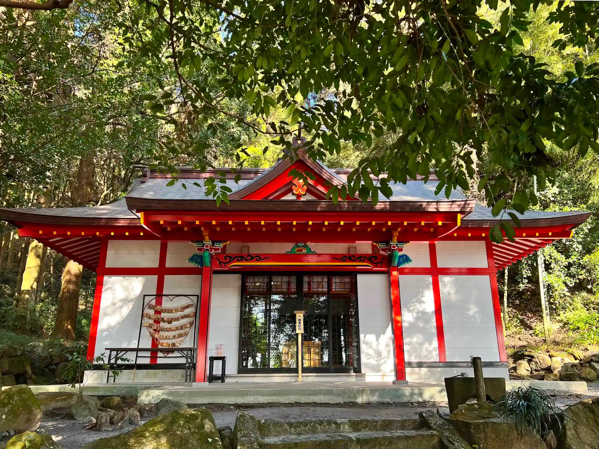 <拝殿>全景。真っ赤な朱塗りがビビッド。