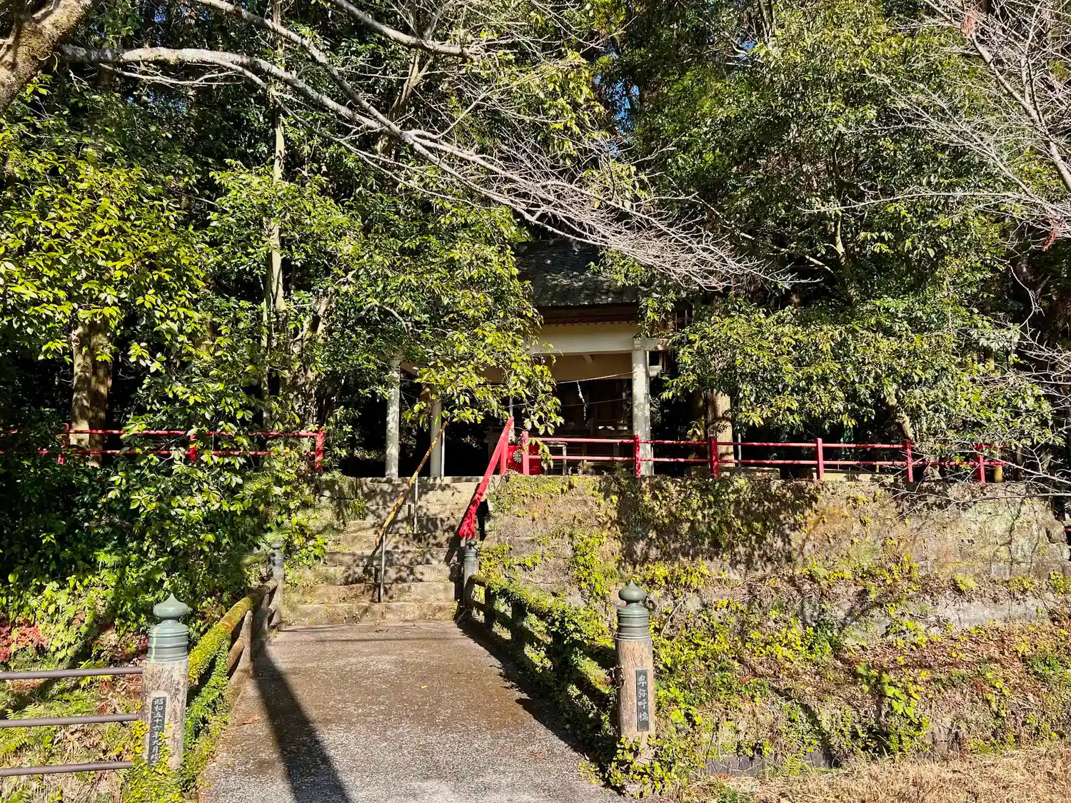拝所に直接つながる橋もある。欄干には橋名として「卑弥呼橋」とある。