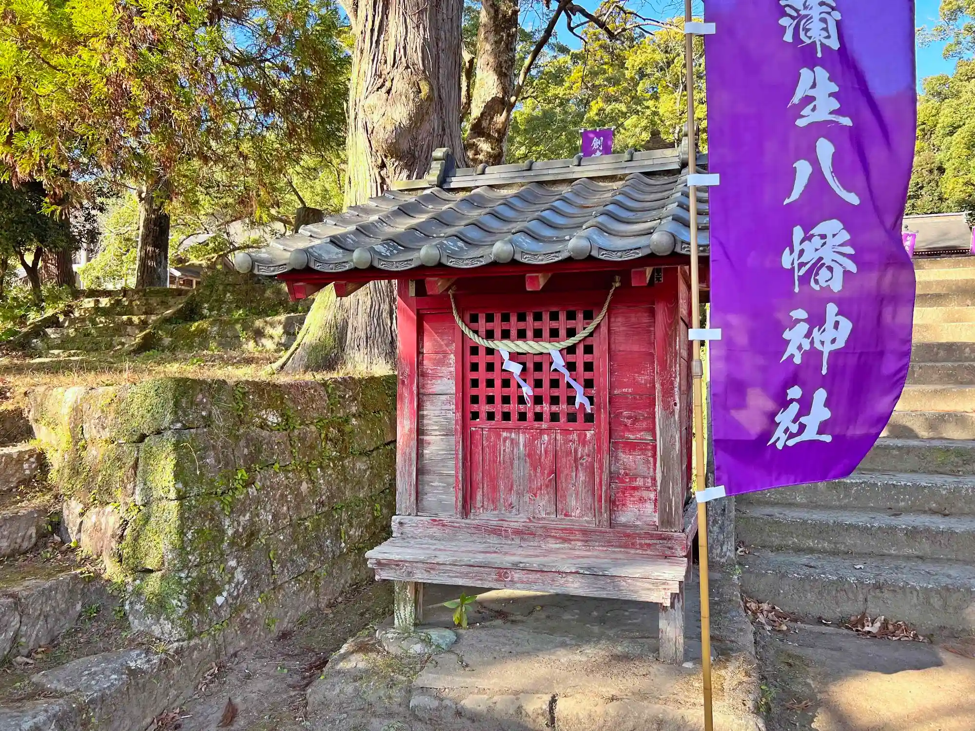 階段左側の門守社。